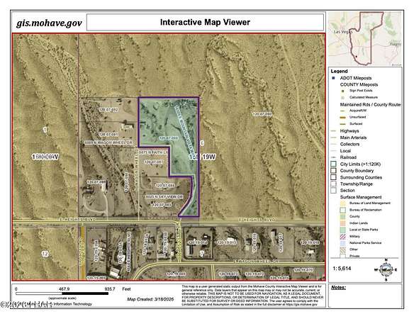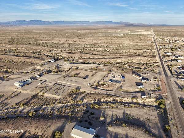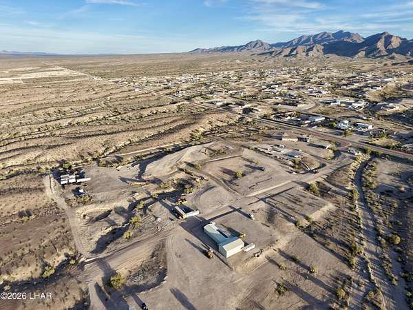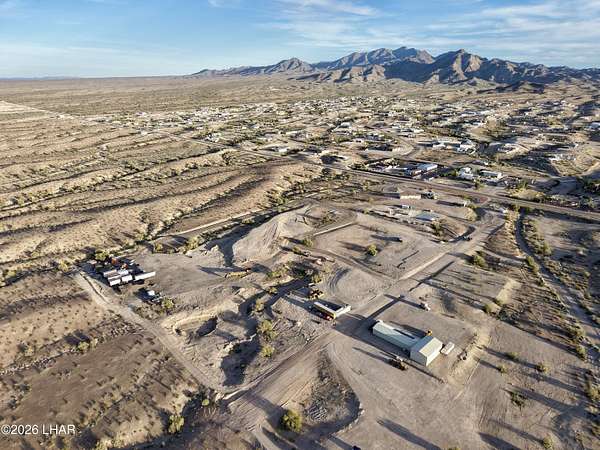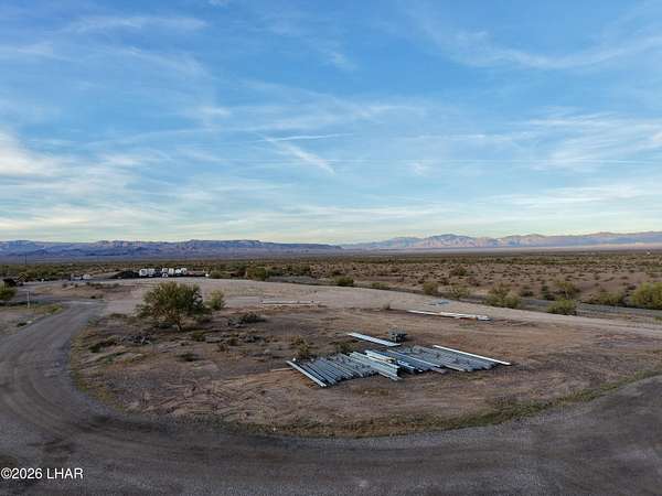 *3,000 sq.ft. metal building on slab to be constructed* on this 10.37 acres bordering BLM on two sides and just 1 mile from SR-95 to the west and the upcoming DL Ranch to the east. Tucked within a 35-acre enclave just north of E. Heights Blvd., this parcel is accessed via a private driveway that winds its way to a gentle knoll, an ideal site for your future estate home. Thanks to its elevated position, you'll enjoy stunning panoramic vistas of the Hualapai, Mohave, and Warm Springs mountain ranges. Despite its seclusion, you're just a 5-minute drive from the popular Bunker Bar and have immediate access to miles of open desert; ideal for off-roading, hiking, or simply soaking in the serenity. Property lines shown in photos are approximate.