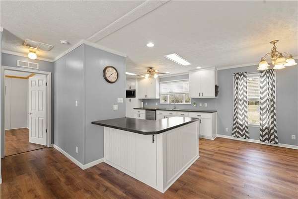 - Bath In Primary Bedroom, Bedroom On Main Level, Bookcases, Built In Features, Cable Tv, Ceiling Fans, Dining Area, Double Vanity, Fireplace, Garden Tub Roman Tub, High Speed Internet, Kitchen Island, Laminate Counters, Main Level Primary, Paneling Wainscoting, Recessed Lighting, Walk In Closets, Window Treatments, Wired For Data