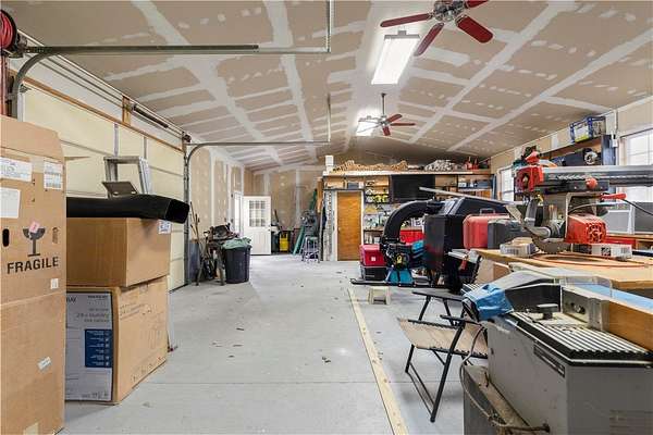 DON'T MISS OUT ON THIS OPPORTUNITY to spread out on over 2 acres and enjoy country living in this well maintained 3 BR, 2.5 BA Ranch! PRICED UNDER APPRAISAL!! 1,836 SF of comfortable living space with 2 car attached garage PLUS an additional 1,100+ SF attached shop! Spacious Kitchen with SS appliances, island and ample custom cabinetry open to dining/living area. Primary suite with walk-in closet and private Bath featuring double sinks, soaking tub and walk-in shower! Split bedroom plan provides two additional bedrooms with walk-in closets and Hall Bath. LOOKING FOR AMAZING GARAGE & SHOP SPACE?? THIS ONE IS FOR YOU!! Car/Mechanic/Woodworking enthusiasts will love the ATTACHED HUGE shop area with separate entry, office and 1/2 Bath! Fireplace can be used as gas or wood burning. New flooring throughout most of home and HVAC is approximately 2+ years old. Rear deck for entertaining and large fenced back yard. Three sheds convey for your storage needs. MUST SEE TO APPRECIATE ALL OF THE SPACE THIS HOME HAS TO OFFER!! This is a modular home on a permanent foundation. Garage and Shop were built after the home.