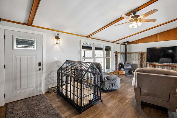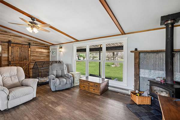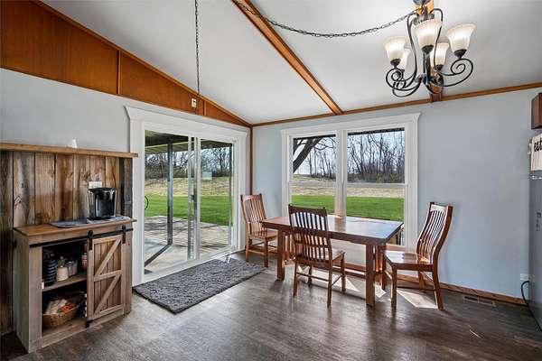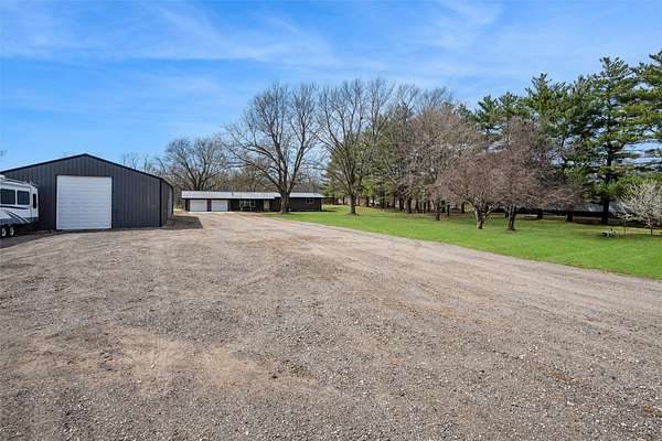 Here's a spot on 2.87 acres where the layout, the land, and the updates all come together naturally. It is genuinely hard to find four bedrooms on one level, and this home has them all on the main floor. The unfinished basement adds even more space for storage or future plans. The home sits on a dead end road, which keeps traffic light and adds to the easy country setting. The exterior had a major update in 2025 with new roof, siding, soffit, fascia, and gutters. It has a clean, modern look that fits the acreage setting. The newer 30 by 60 outbuilding is a huge bonus with one 12 by 10 overhead door and two 10 by 10 overhead doors. You also have an attached two car garage and an extra wide driveway for easy parking and access. Inside, you will find vaulted ceilings, rustic touches, and a wood burning stove that brings warmth and character to the main living area. The kitchen has plenty of cabinet space and a layout that keeps everything within reach. The backyard has generous deck space and a wide open view that makes it easy to enjoy the country lifestyle. You are minutes from Lake Red Rock, public hunting areas, and quick drives to Pella, Knoxville, Pleasantville, and Monroe. It is a great location for anyone who wants acreage living with access to some of Iowa's best recreation and small town destinations. If this feels like your kind of place, reach out and come take a look!