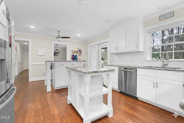 - Bookcases, Dining L, Eat-In Kitchen, Entrance Foyer, Kitchen Island, Walk-In Closet(s), Walk-In Shower, Wet Bar
