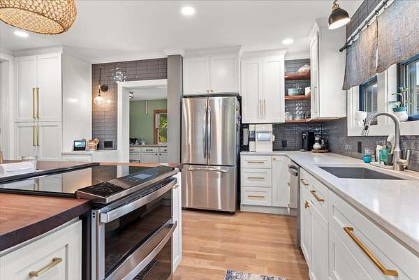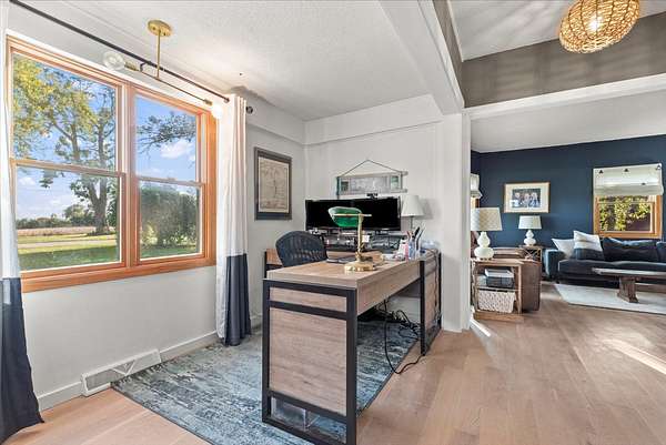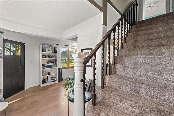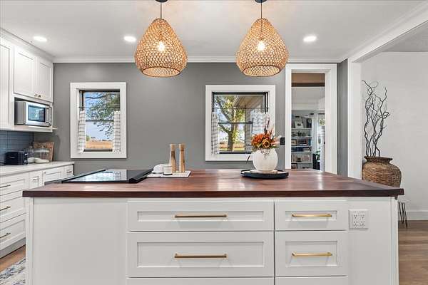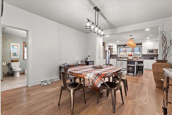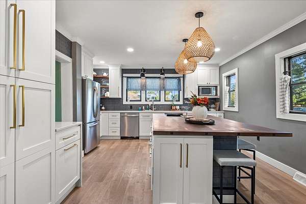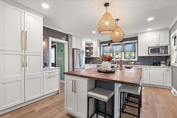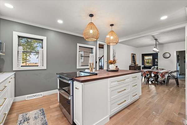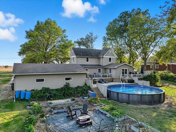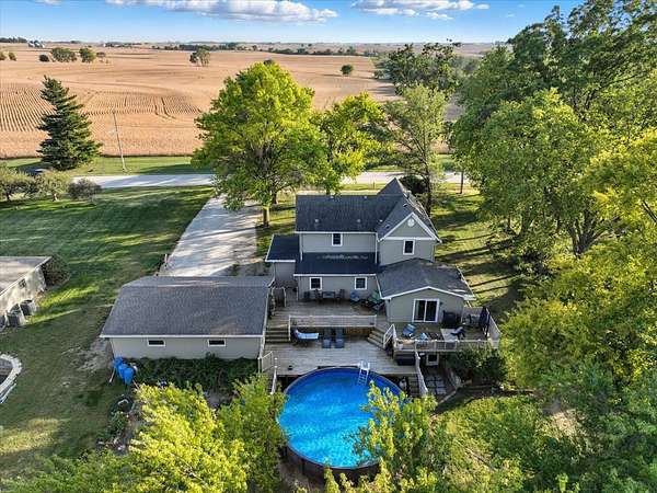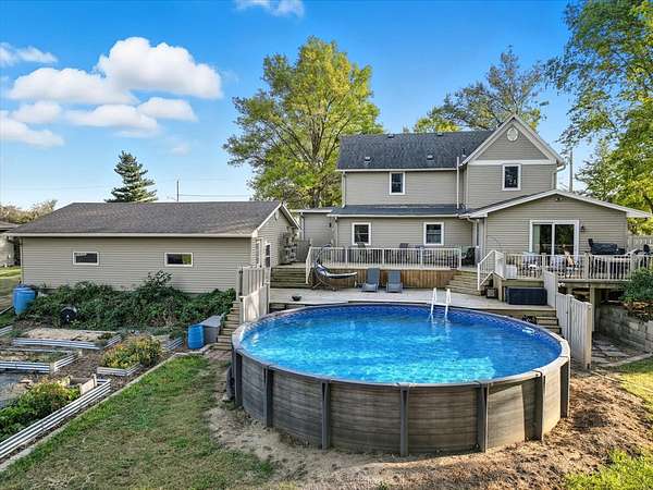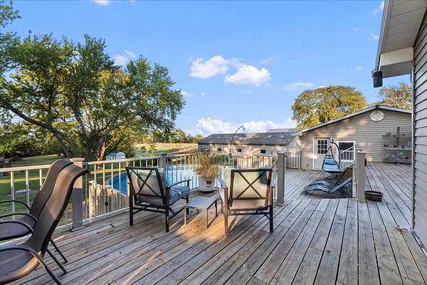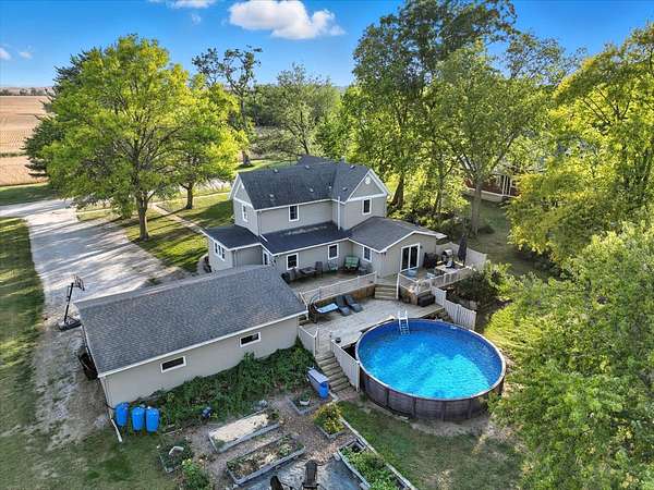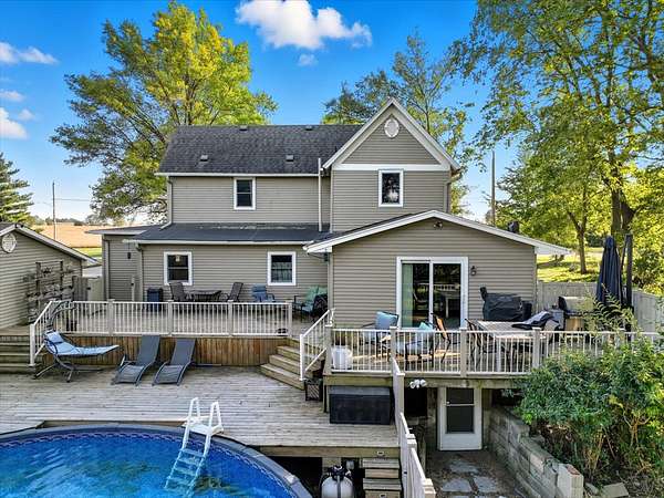 Est $2,057/moCountry living within city limits! This bright 2-story home sits on 2.5 acres and features 3 spacious bedrooms and 1.5 baths. The main level boasts two living areas, including a vaulted-ceiling family room with a cozy fireplace and walk-out access to the deck. The kitchen is a standout with sleek cabinetry, stylish hardware, a perfect blend of walnut and quartz countertops. Large mudroom/laundry for convenience. Lower level includes extra living space, workout area, and storage. Outside, enjoy summer days by the pool, mature trees, garden area & shed for lawn equipment. Oversized 2 car garage/shop is an added bonus! Country charm awaits, call today!