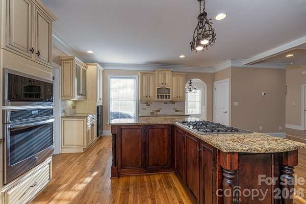 This beautifully maintained, move-in ready home offers an open floor plan perfect for modern living. The gourmet kitchen flows into a lovely family room, ideal for gatherings. The spacious primary suite on the main level features a fully updated, spa-inspired suite with elegant tile work and multiple shower heads. And a new soaker tub. Upstairs, you'll find four additional bedrooms, two full baths a large recreation room, and ample storage, with plumbing already in place to easily add another full bath off this room. Hardwood floors on the main level and upstairs. Situated on a large 2-acre, corner lot. The home offers privacy and outdoor enjoyment with a screened-in rear porch and front porch. Additional features include a three-car garage, all appliances conveying, and access to community amenities such as a pool and RV/trailer storage lot. Conveniently located a short distance from the new Lake Wylie High School and all the award-winning Clover schools.