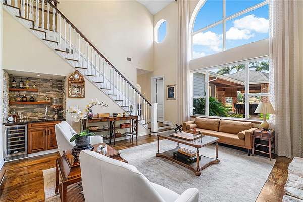 Welcome to a truly rare gated waterfront estate set on 1.56 acres with over 500 ft of lake frontage. This exceptional compound features an expansive main residence, two-story guest house, & a separate workshop. Built with CBS construction & outfitted with impact glass & full-house generator, the main home features soaring 12-foot volume ceilings creating an airy sense of scale. Recent updates include new kitchen floor(2024), new upstairs flooring(2026), new tankless hot water heater(2024), & 3 HVAC systems (all under 3 years old). Outdoors, the entertainer's setting continues w a private oversized pool & outdoor kitchen overlooking sweeping water views. The extraordinary width of the lot delivers unmatched privacy & shoreline, a waterfront presence rarely available in Palm Beach County