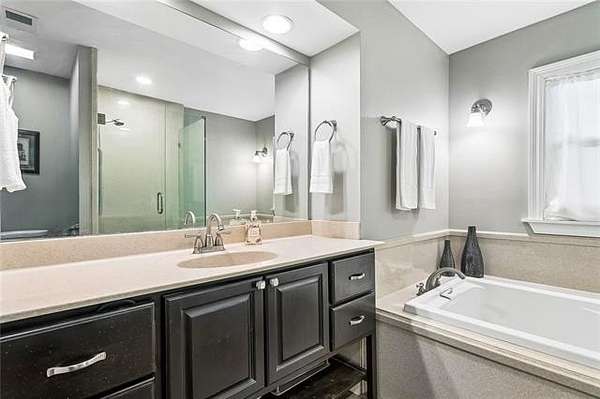 The home features a spacious main residence plus a second-floor living area of approximately 1,050 SF that includes its own primary suite, kitchen, and living room, with both interior and exterior access, creating an ideal setup for a private apartment, guest quarters, or extended family living.