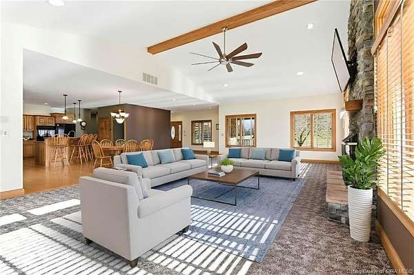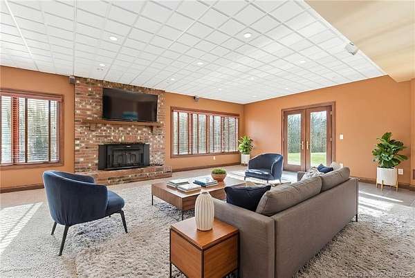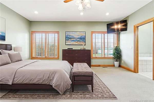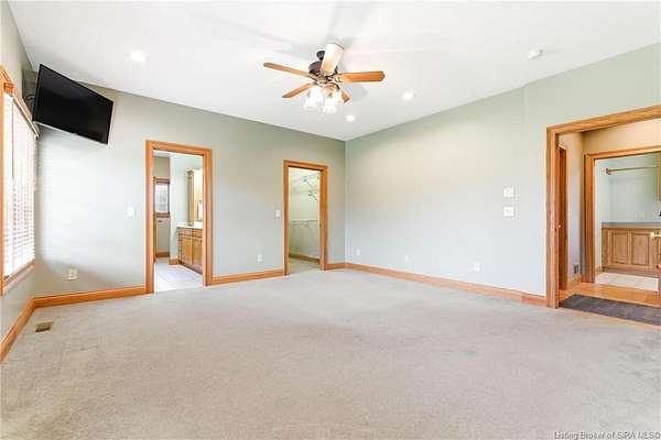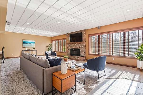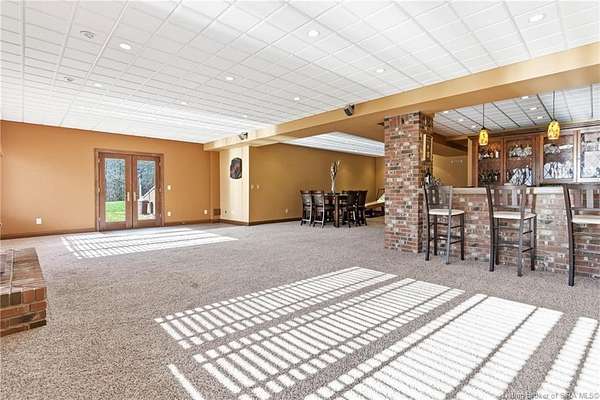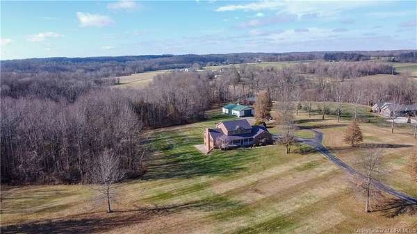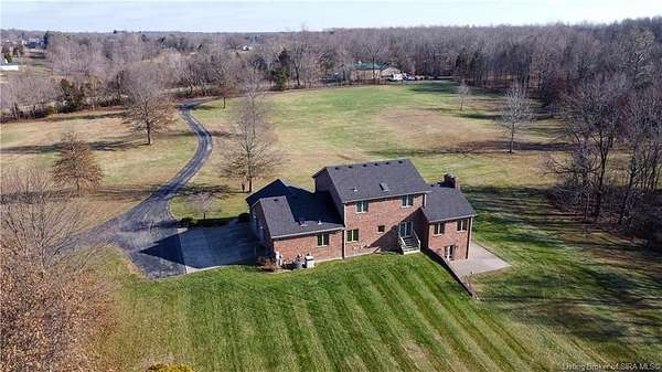 NAVILLETON AREA/ 20 acres, backing up to serene Campbell Branch Creek, this is your rare Floyd County opportunity! This classic all brick beauty combines large country acreage with a warm family friendly feel. This home was lovingly designed by the 1 owner it's had for many years. From the moment you wind around your tree lined driveway, you'll fall in love with the timeless charm, inviting front porch & sweeping views of open fields and woods. Inside you'll find spacious gathering areas, a warm masonry built fireplace and a large eat in kitchen for everyday living and entertaining. This home offers 5 bedrooms with the primary suite on the first floor. There are 4 bedrooms on the second floor, & in the full bathroom are two tub/shower combos, no more listening to the kids fight over the shower. In the lower level, you'll appreciate the 2 smaller flex rooms you could use as an office or fitness room or a non conforming bedroom if needed. The finished lower level also has a full bathroom & unfinished space for storage & the other beautiful masonry built fireplace to enjoy. The exquisite custom glass shelving and built in cabinetry in bar area is one of a kind. If the 3 car garage isn't enough, how about a 42 x 60 Morton built pole barn with endless opportunities for any legal height road vehicles, it's ready for your RV, ATV's, boat storage and more. This property is capable of hosting large scale events and accommodating your friends and family in a gorgeous private setting.