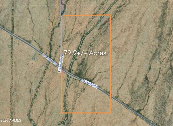 Est $2,773/moGreat opportunity to have almost 80 acres with a combined 3000 feet of frontage on Salome Hwy. It's located about 1/2 mile from Ave 75E which has an on-ramp at the Interstate 10. About 2 miles west of the Maricopa County Line. This flat land comes with mountain views that are breath-taking! Desert Moon Road runs up the west boundary of the property. State land on the east side. BLM land on the south side. Make it your homestead or make it your new business location. Check with La Paz County for what the appropriate uses are here. So many options, don't wait to see this one!