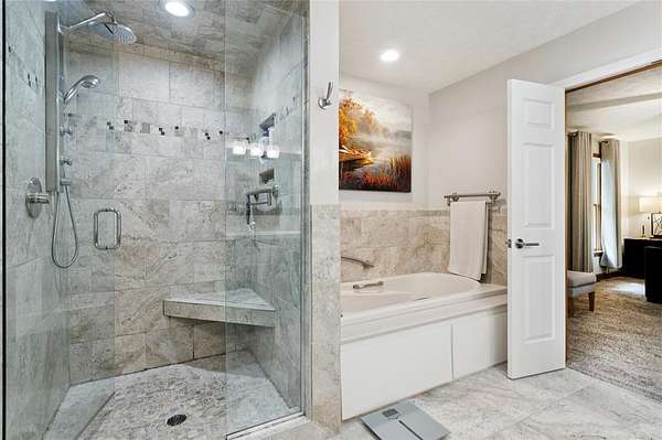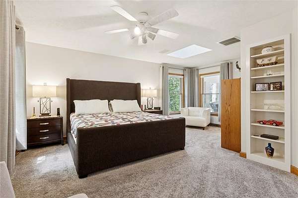 - Bath In Primary Bedroom, Beamed Ceilings, Bookcases, Built In Features, Cathedral Ceilings, Ceiling Fans, Central Vacuum, Dining Area, Fireplace, Granite Counters, High Ceilings, Jetted Tub, Main Level Primary, Multiple Primary Suites, Pantry, Recessed Lighting, Separate Formal Dining Room, Skylights, Walk In Closets, Window Treatments