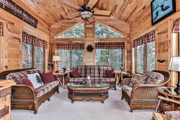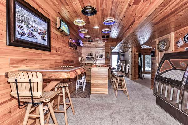 Fantastic south facing Chalet with incredible views of Twin Island Lake in Frontier Lakes Preserve just north of Boulder Junction! Beautifully maintained cedar sided home features 4 bedrooms, 3 full bathrooms, fieldstone gas fireplace, 4 season room, family room and bar room. Check out all the recent improvements! Huge 3 car garage with a heated workshop and heated finished loft PLUS a 28x28 Pole Building! Large deck overlooking the 297' of pristine lake frontage. Private lake access to all the Natural Lakes. Twin Island is know for fantastic Musky, walleye, bass and pan fishing. Frontier Lakes annual dues are $725.00. The snowmobile/ATV trail directly into the UP trail system is just around the corner from the house!