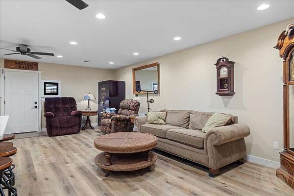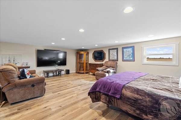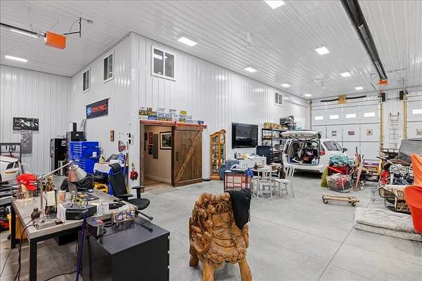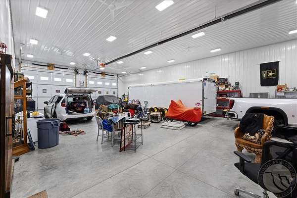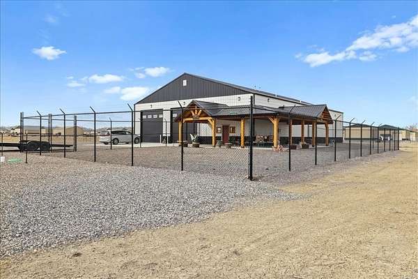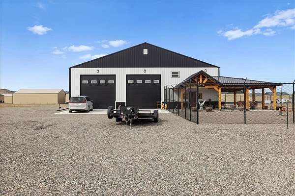 Welcome to every mans dream, the ultimate shop house! This amazing facility sits on just under 10 acres on two lots that encompass over 5,000 sq ft of shop space done to perfection with 5 huge insulated garage doors with commercial motors both front and back, a grease pit, and lift! Radiant heating in this fully finished shop keeps the space warm and comfortable while all of the LED lights keep it bright and ceiling fans keep the air flowing. With plenty of space to do whatever it is you desire, the attached living space is just over 2,100 sq ft. With an amazing kitchen, high-end appliances, and fine touches throughout including lvp and tiled showers, this is ultimate comfort. The perimeter is fenced with a secondary fenced enclosure for pets as well as a covered patio. Flood irrigation available seasonally!Total square footage of main floor is 6,000 (1,056 of livable, shop is 4,944)