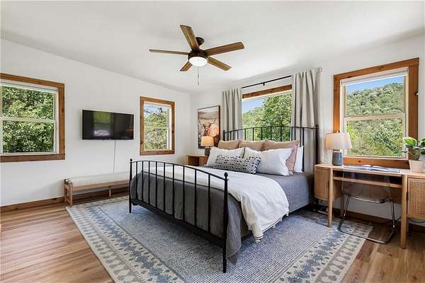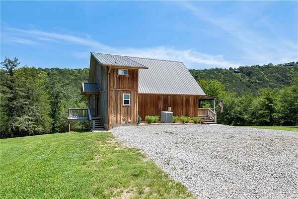 Escape to your own stretch of the White River with this fully remodeled 4-bedroom, 3.5-bath cabin offering over 500 feet of river frontage and 6+ private acres of pure Ozark beauty. The 2,539 sq ft interior has been completely updated with contemporary finishes and thoughtful touches throughout. The main level features an open layout with deck access from the master suite, while upstairs, one bedroom has its own private balcony and another includes a bonus sleeping area perfect for guests or family. The walk-out basement adds a second living room, giving everyone space to unwind. Located less than an hour from the Northwest Arkansas metro and just minutes from Eureka Springs' dining and entertainment, this cabin offers the perfect blend of privacy and convenience. This stretch of river is known for fishing, the the boat ramp is close! With a strong income history as an Airbnb and VRBO rental, this property is equally suited as a private getaway, family retreat, full time residence, or income-producing investment.