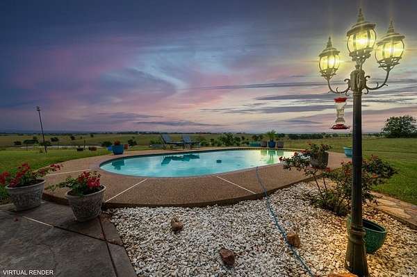 Est $5,194/moThe house on top of the hill that you hear about in movies? Here you have it! This beautiful spacious home sits on 6 acres with beautiful country views. Enjoy the views, peace and quiet, stocked tank up front full of catfish for you and friends and family to go fishing, an underground pool, and plenty of space in the home to entertain friends and family for all of your holiday activities.