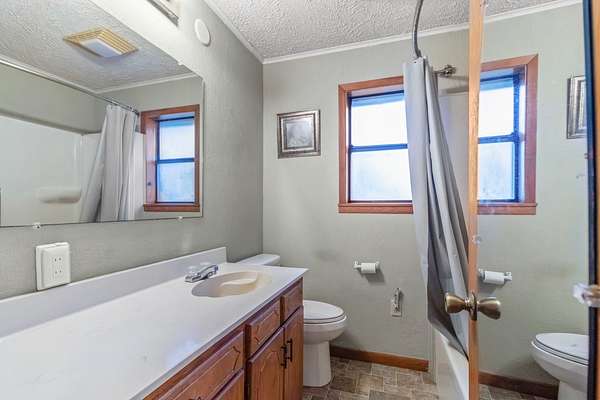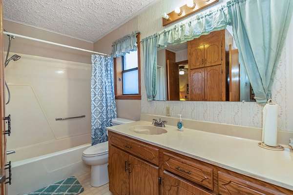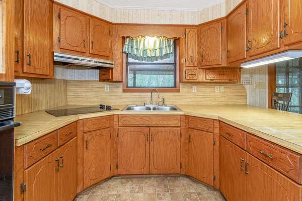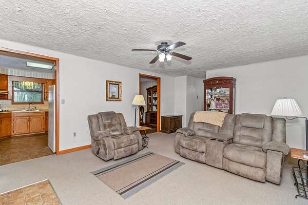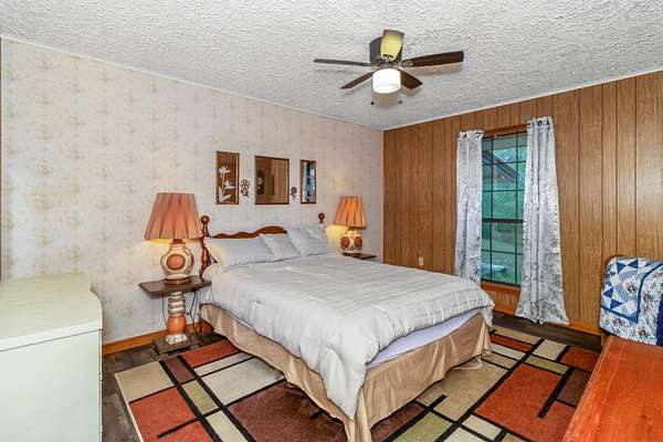 Tucked away in the quiet Peason Community of Florien, this 2 bedroom, 2 full bathroom home sits on 18.65 acres overlooking open pasture and a small creek that runs along the back, offering a peaceful and private setting from both the front porch and covered back porch, with acreage like this becoming harder to find. Built in 1985 and owned by one family, the home has been well maintained and features custom built real oak cabinetry throughout, providing abundant storage, built-ins, and a china cabinet in the dining area. The spacious living room is centered around a large brick fireplace with a Country Flame wood burning insert with blowers, serving as a key focal point and heat source alongside window units with heat strips. Both bedrooms are generously sized at 14 x 13 and each has access to a full bathroom, with the second bathroom accessible from both the bedroom and hallway. The kitchen offers a functional layout with a double sink, glass top range, separate oven, coffee bar area, and the refrigerator remains. Additional features include a 600 square foot double garage with laundry area and two manual 9 x 7 garage doors that could be easily upgraded, as well as a 10 x 25 wooden shed with two 10 x 11 lean-tos for extra storage or workspace. This property offers flexibility for homesteading, downsizing, retiring, or building a future home while enjoying a quiet, rural setting.