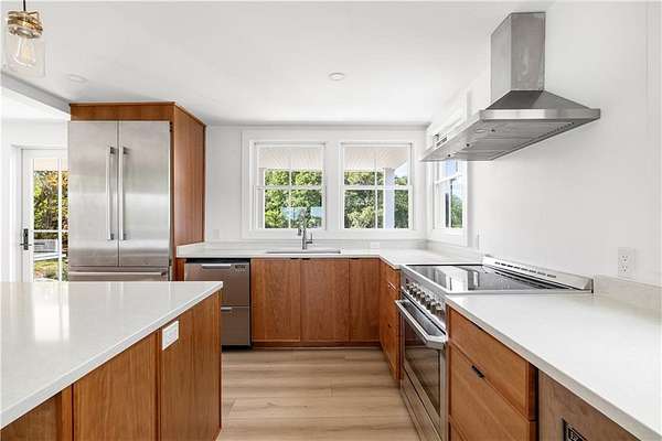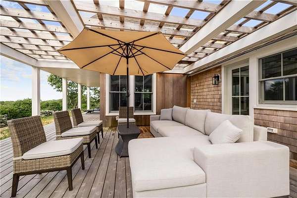 An Unparalleled Combination of Privacy, Views, and Island History. One of Block Island's most unique and beautiful properties, offering rare privacy, sweeping ocean views to Montauk, and the Island's most extraordinary collection of mature trees. With 3.5 acres of historic Payne family farmland, this elevated site features original stone walls, Lily Pond frontage, and potential for over 12,000 sq ft of living space. Recently completed, the reconstructed 3 bedroom main house blends modern farmhouse style with low-maintenance design. The open kitchen, dining, and living area frames ocean views through large windows and flows seamlessly outdoors to generous decks, a portico-shaded patio, and a striking outdoor shower built on native stone. Heating and AC provide true four-season comfort. A brand-new guest, with its own outdoor shower, decks, and entertaining spaces. Accessed from both Payne Road and Mohegan Trail, the property feels private yet remains close to beaches. Its expansive acres, shaded by mature trees and enhanced by natural breezes, create a setting that is both peaceful and restorative. Combined with wide-open skies, it offers glowing sunsets, endless stargazing, and an unmatched opportunity to experience the very best of Island life.