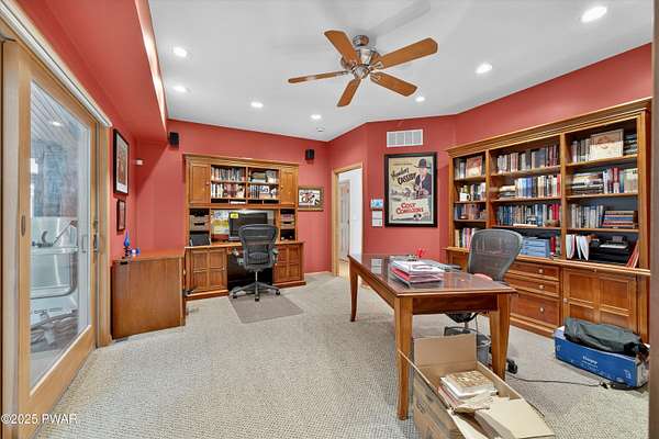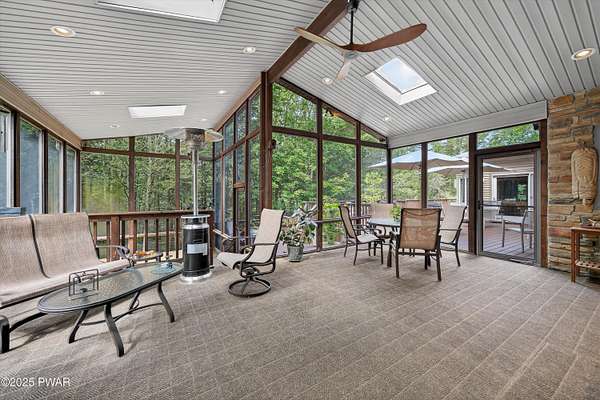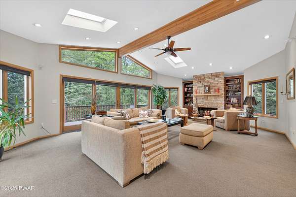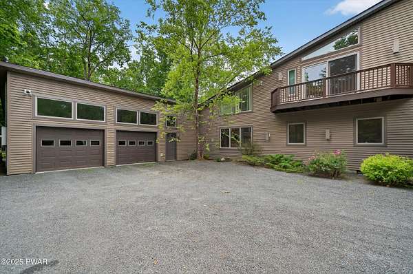 MAGNIFICENT CUSTOM CONTEMPORARY ON PRIVATE COURT IN HEMLOCK FARMS -RARE FOUR-LOT ESTATE OFFERING UNPARALLELED PRIVACY Discover ultimate seclusion on this extraordinary 2.65-acre estate, created from four combined lots and positioned at the end of a quiet cul-de-sac. With a serene greenbelt providing a natural privacy buffer, this beautifully appointed 5,000+ square foot custom contemporary will remain the only home on this exclusive court, ensuring complete privacy and tranquility. EXCEPTIONAL SPACE & FLEXIBILITY This impressive home features 5 spacious bedrooms plus 4 additional large windowed rooms currently utilized as office/den, media room, and exercise room. With soaring 24-foot ceilings in the main living areas, every space feels grand and open. All flexible rooms offer endless possibilities for customization to suit your lifestyle needs, including the potential for additional bedrooms.ENTERTAINER'S PARADISE The primary en suite is conveniently located on the main level, while the sun-drenched open floor plan showcases custom cabinetry, granite countertops, a wet bar, and wine fridge - perfect for hosting. The expansive screened porch features a step-down Jacuzzi and 1,500 SF of low maintenance Trex decking, creating an ideal outdoor entertainment space. LUXURY AMENITIES & MODERN CONVENIENCES Transform your evenings in the state-of-the-art media room, complete with a 10-foot screen and 8 custom surround sound speakers. Additional premium features include an oversized two-car garage, entire new roof installed in 2024, and a full-house propane generator for complete peace of mind and uninterrupted comfort.EXCLUSIVE HEMLOCK FARMS LOCATIONLocated in the highly desirable, gated community of Hemlock Farms, this remarkable estate combines luxury living with the ultimate in privacy and natural beauty. The four-lot configuration and cul-de-sac positioning create a truly unique opportunity - this level of privacy and space is rarely available in today's market