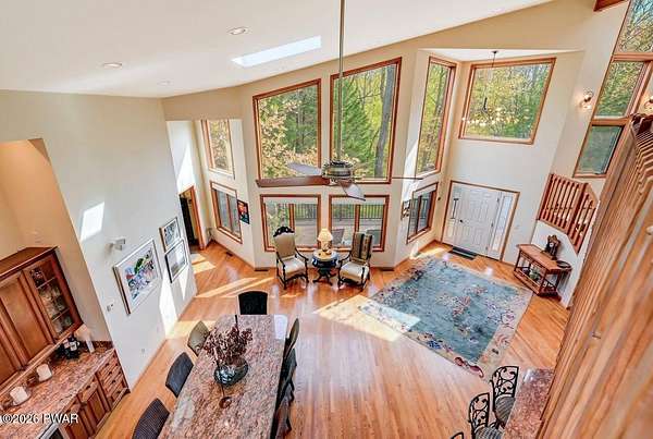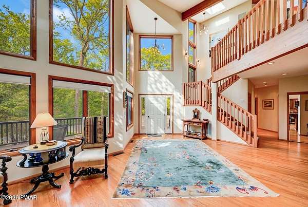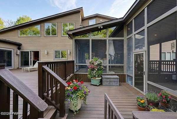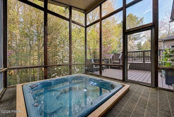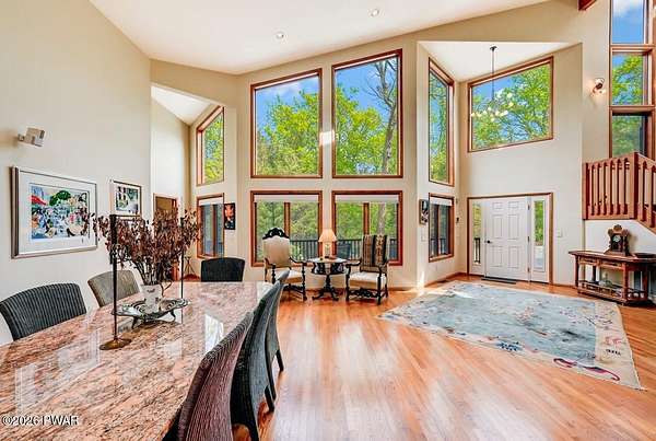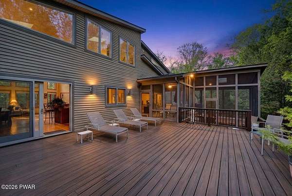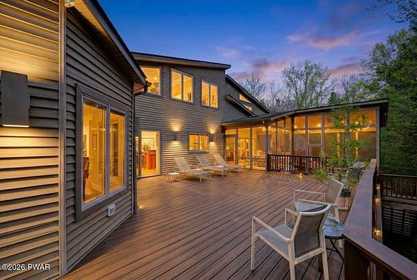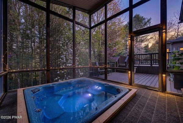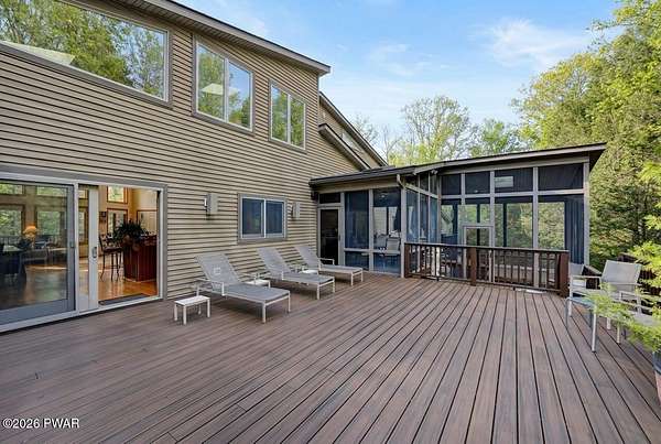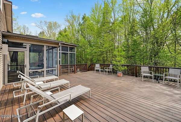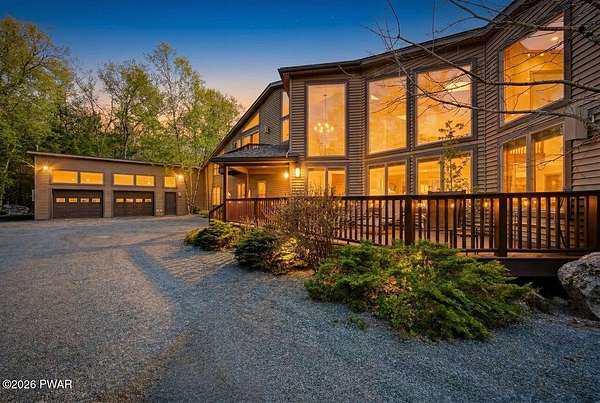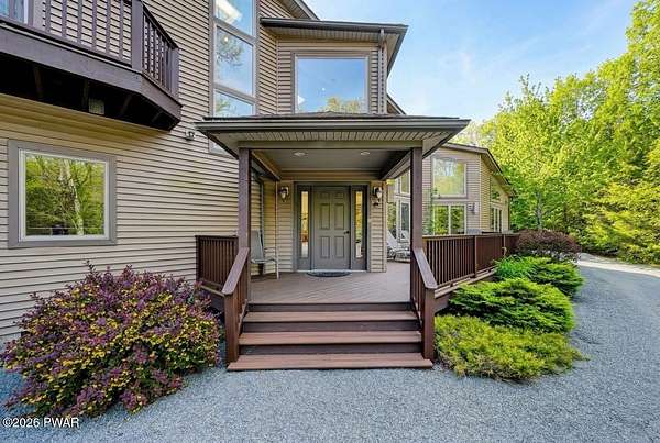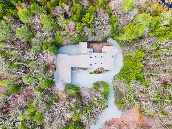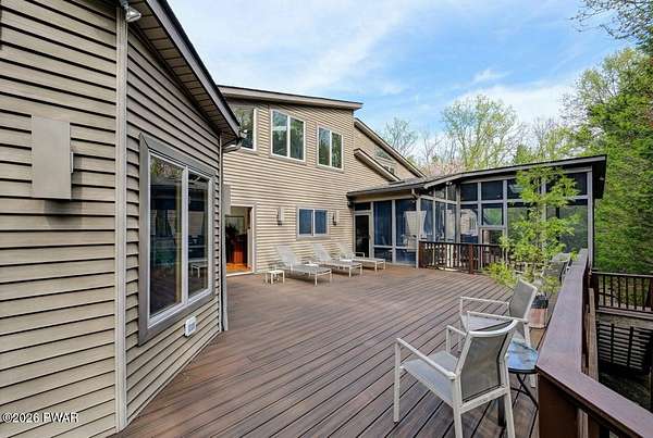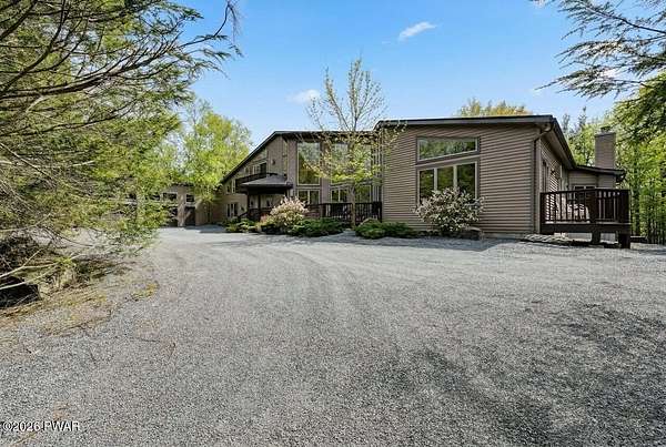 Opulence in the woods! Live your fairytale life on this sprawling 2.75 acre estate. Most unique lot in Hemlock Farms. Four lots have been combined into this one estate where privacy abounds surrounded by 1,000's of acres of natural beauty. The only home on this cul-de-sac. Soaring cathedral ceilings, dramatic windows. A most beautiful kitchen leading into the dining room, sitting area and wet bar with wine fridge. Contemporary style home with the convenience of all first floor living - an oversized ensuite, home gym, study, laundry and garage entrance. So many bedrooms for room for everyone to stay. Host your very own Gatsby style party. Guests can - wander thru the french doors to a Living Room with a propane stone fireplace, or down the hallway to the personal home theatre featuring reclining chairs, a 10-foot screen and 8 custom surround sound speakers. Or get a breath of fresh air and enjoy the wooded views that last forever on the oversized 1500 sq ft composite deck. Then there is the option to mingle on the screen porch where the jacuzzi is waiting for you. This home offers beauty and tranquility and the amazing bonuses of unlimited storage, an oversized two-car garage, entire new roof installed in 2024, and a full-house propane generator.Feel like you are living the life of the ''lifestyles of the rich and famous''.....country style! Hemlock Farms is a year round recreational community with so many included amenities - pools, lakes, beaches, gym, bocce, tennis, pickleball, 24 hour security... Lords Valley Country Club is a private non-profit club located within the gates of Hemlock Farms with a USGA- rated championship 18 hole golf course, dining, Har-tru tennis, pickleball. Contact LVCC directly for rates and membership.** Be well! Be happy! Be in Hemlock!