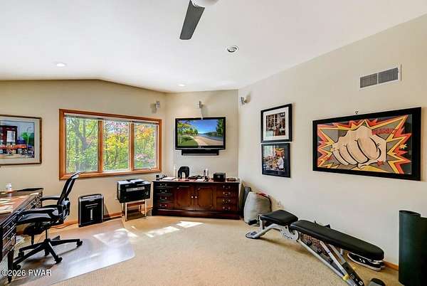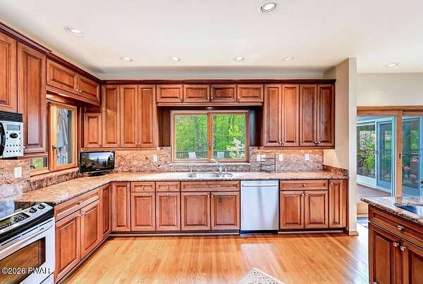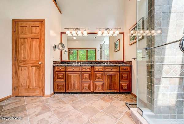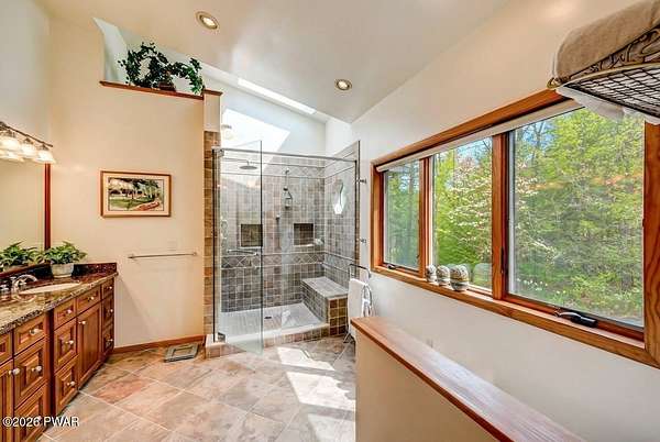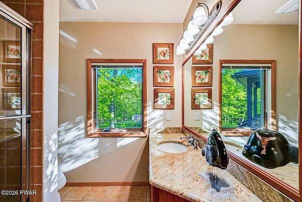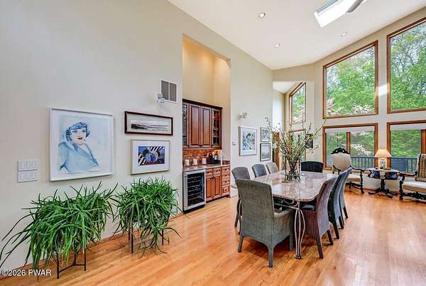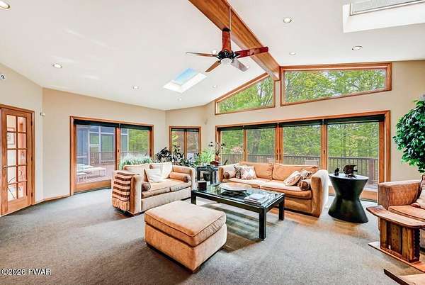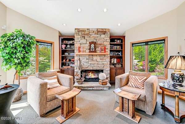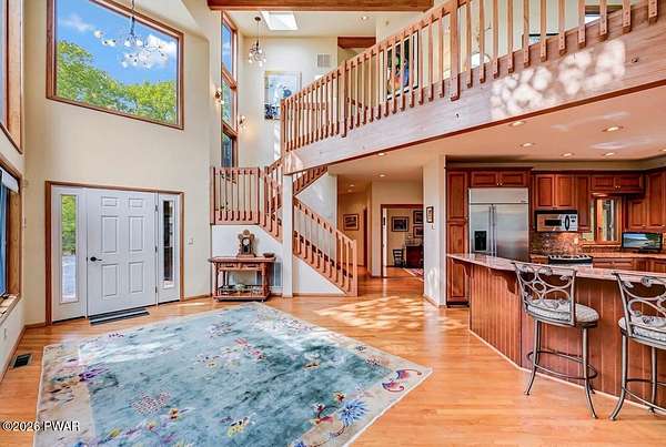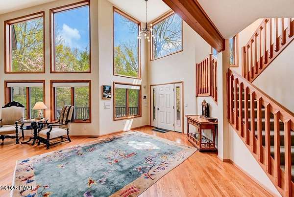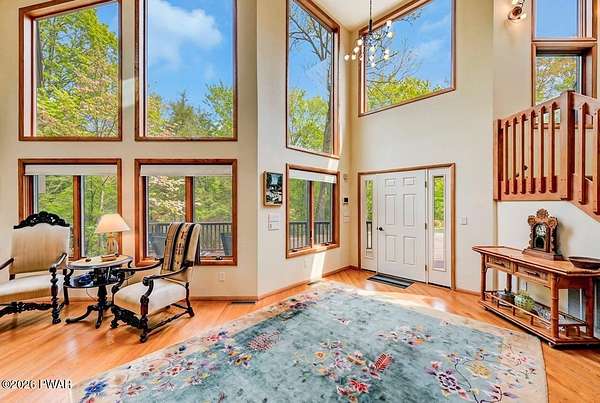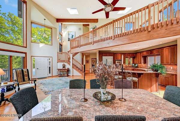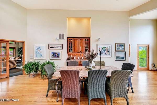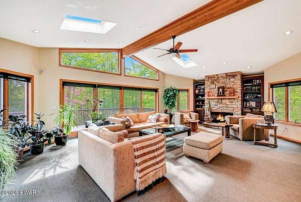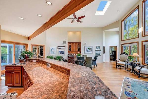 Opulence in the woods! Live your fairytale life on this sprawling 2.75 acre estate. Most unique lot in Hemlock Farms. Four lots have been combined into this one estate where privacy abounds surrounded by 1,000's of acres of natural beauty. The only home on this cul-de-sac. Soaring cathedral ceilings, dramatic windows. A most beautiful kitchen leading into the dining room, sitting area and wet bar with wine fridge. Contemporary style home with the convenience of all first floor living - an oversized ensuite, home gym, study, laundry and garage entrance. So many bedrooms for room for everyone to stay. Host your very own Gatsby style party. Guests can - wander thru the french doors to a Living Room with a propane stone fireplace, or down the hallway to the personal home theatre featuring reclining chairs, a 10-foot screen and 8 custom surround sound speakers. Or get a breath of fresh air and enjoy the wooded views that last forever on the oversized 1500 sq ft composite deck. Then there is the option to mingle on the screen porch where the jacuzzi is waiting for you. This home offers beauty and tranquility and the amazing bonuses of unlimited storage, an oversized two-car garage, entire new roof installed in 2024, and a full-house propane generator.Feel like you are living the life of the ''lifestyles of the rich and famous''.....country style! Hemlock Farms is a year round recreational community with so many included amenities - pools, lakes, beaches, gym, bocce, tennis, pickleball, 24 hour security... Lords Valley Country Club is a private non-profit club located within the gates of Hemlock Farms with a USGA- rated championship 18 hole golf course, dining, Har-tru tennis, pickleball. Contact LVCC directly for rates and membership.** Be well! Be happy! Be in Hemlock!