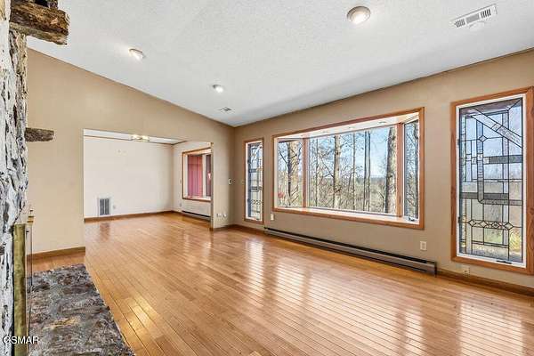 Custom-built mid-century modern 4 bedroom 3 bathroom retreat on 14 private acres of old-growth forest with views of Mount LeConte and Bluff Mountain. A true national park-like setting surrounded by a well manicured native garden. Vaulted ceilings and expansive windows fill the home with natural light, while a heated and cooled four-season sunroom with exposed beam overlooks a serene setting. This beautiful home also has several custom stained glass pieces built in throughout. Enjoy a central location between Knoxville and Sevierville with an easy drive to Maryville, offering privacy without sacrificing convenience. The property features an in-ground pool, two detached garages including one oversized garage ideal for RV, workshop, or storage, plus extensive updates including HVAC, water systems, exterior paint, driveway, appliances, fireplaces, and more. A rare opportunity for buyers seeking seclusion, space, and character in an unmatched natural setting. Ask your agent to share the upgrades list with you! Buyer to verify all information.