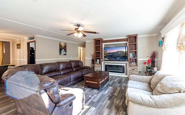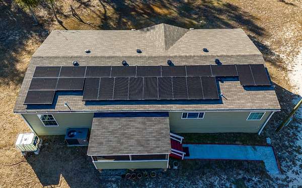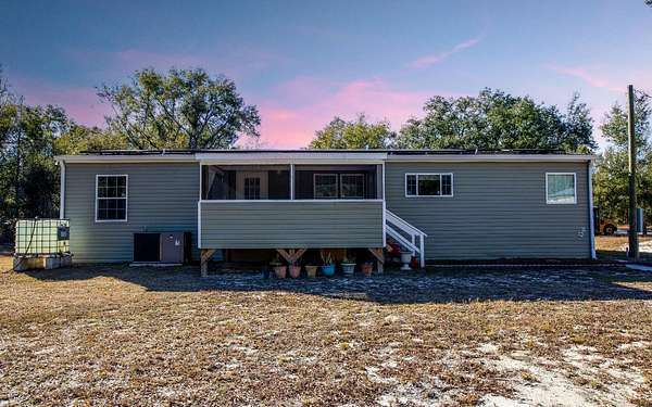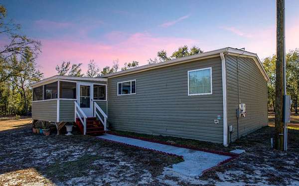 Leave the hustle behind and step into peace, privacy, and room to breathe. Tucked away on 4.01 acres, this 3 bedroom, 2 bath, 2023 doublewide with 1,770 sq ft, offers the quiet country lifestyle so many are looking for! Bring the animals, plant the garden, and enjoy space that feels like home. The land is already set up for country living with some small fenced areas ideal for gardening or animals, plus a shed with electricity and water, a small carport, and a screened-in back porch where mornings are slower and evenings are calmer. All three bedrooms have walk-in closets. and the master bathroom has a double vanity, garden tub, and separate shower. Practical upgrades matter too! There are 22 solar panels to help reduce the electric bill, adding long-term value and efficiency. Please excuse the boxes! Sellers are already packing as they prepare to move closer to family. If you're dreaming of space, privacy, and a slower pace of life...this property has it! Call today to come check it out!
