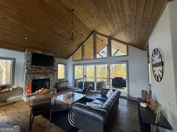 The Vacation Starts the Moment You Arrive This exquisite 4-bedroom, 4.5-bath residence offers the perfect balance of modern luxury and rustic elegance, framed by seasonal mountain views. Interior Features * Inviting open-concept living area with vaulted ceilings and a striking stone fireplace. * Gourmet kitchen with premium finishes, seamlessly connected to the dining area for effortless entertaining. * Two primary suites, each designed for comfort, privacy, and serene views. * Spa-inspired bathrooms appointed with top-of-the-line fixtures and finishes. * Designer furnishings available under a separate bill of sale. Outdoor Amenities * Expansive deck ideal for morning coffee or evening stargazing. * New semi-inground pool with deck-perfect for gatherings and summer fun. * Brand-new hot tub for year-round relaxation. * Fenced backyard, offering both privacy and practicality. Location & Community * Situated in the prestigious Homestead Mountain gated community. * Surrounded by natural beauty with direct access to hiking trails and outdoor recreation. * Conveniently located within a short drive to downtown Blue Ridge and Ellijay, offering dining, shopping, and entertainment. The fully finished basement includes 2 bedrooms, 2 full baths, bar/recreation area and additional oversized great room. This property is more than a home-it is a mountain sanctuary designed for both adventure and tranquility. Every detail reflects quality craftsmanship and thoughtful design, creating an unparalleled living experience. Schedule your private tour today to experience this exceptional property firsthand.