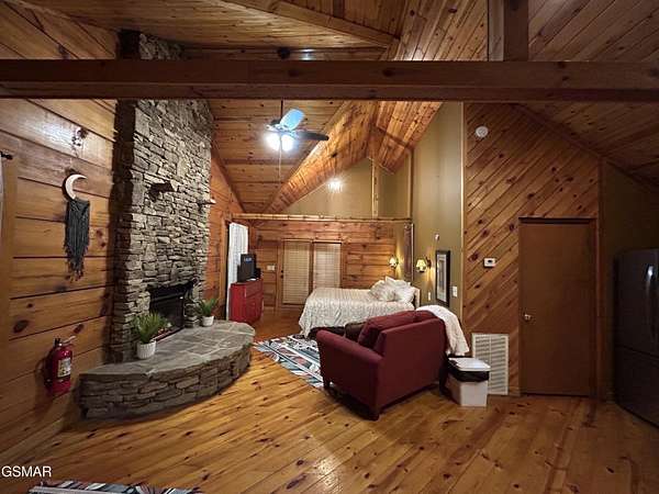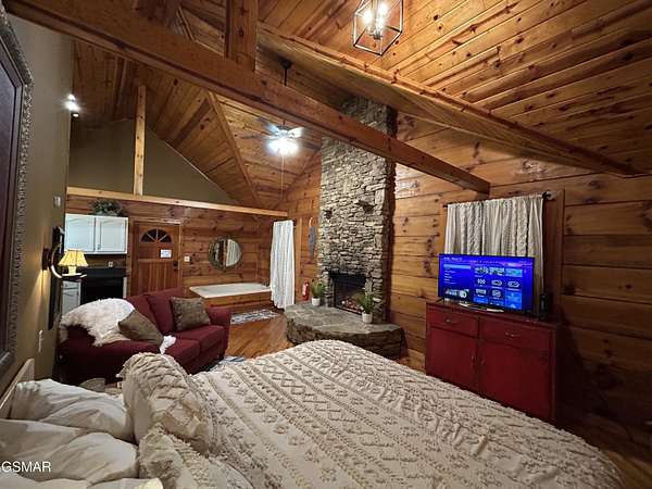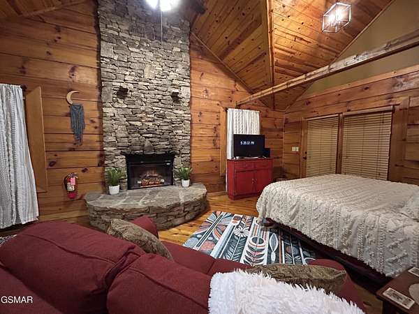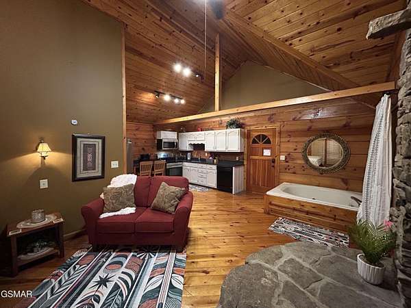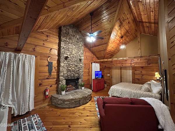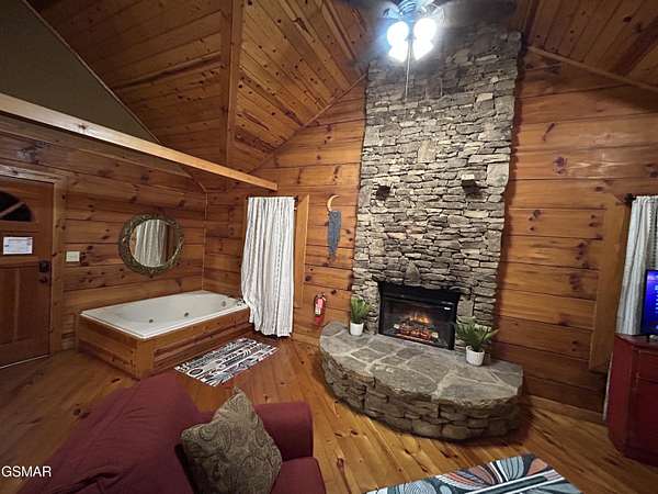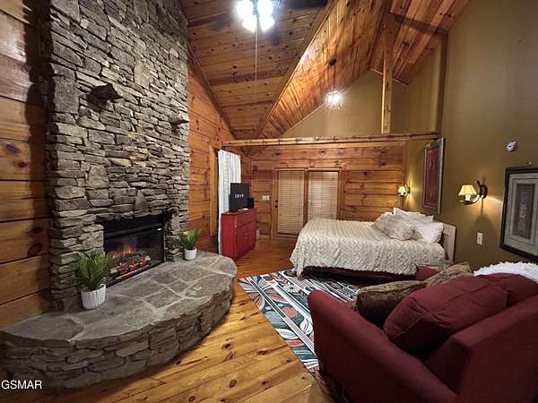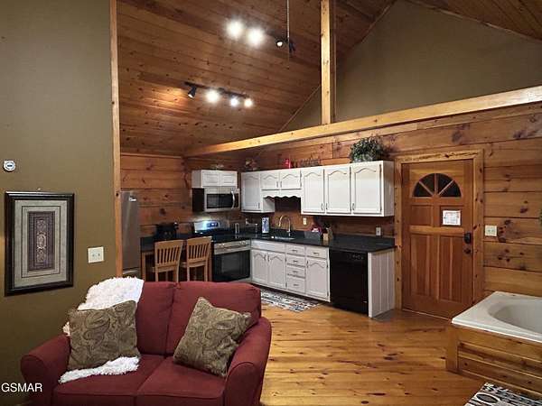 Huge price drop!!! Now $325K. A great opportunity to have your own short-term rental in Gatlinburg! This is a fantastic one-bedroom log studio cabin. Being sold turnkey with all furnishings and decorations. Perfectly situated in a private setting that guest love! There is no hoa fees or restrictions. The cabin features an open layout, complete with a luxurious whirlpool tub, a charming electric fireplace, and a fully equipped kitchen. All new appliances & new hot water heater. The hot tub, & HVAC system have been recently replaced. This cabin also has great outside space with a covered deck, and charcoal grilling area. Whether you're looking to continue its success as a honeymoon rental or make it your private mountain escape, don't miss this opportunity to own a piece of Gatlinburg charm.