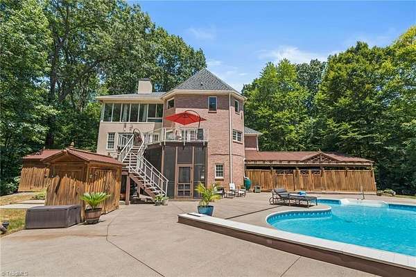 Discover timeless elegance and modern luxury in this beautifully appointed 4-bedroom 4.5 bath brick home nestled on 10 pristine acres. Each spacious bedroom features its own private en-suite bath, offering ultimate comfort and privacy for family and guests. The home has been recently refreshed with a 2025 roof & fresh exterior paint, ensuring peace of mind and curb appeal. Inside, you'll find high-end Neff European Cabinetry that brings a sleek, sophisticated touch to the gourmet kitchen and throughout the home. A rare grocery lift adds thoughtful convenience, making everyday tasks effortless. Unwind in the resort-style amenities complete with a sparkling pool, sauna & steam shower, perfect for relaxing or entertaining. A whole-house generator ensures uninterrupted comfort year-round. Whether you're enjoying the expansive outdoor space, retreating to your private suite, or hosting in style, this exceptional property blends luxury, functionality, and serenity in one remarkable package.