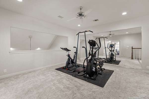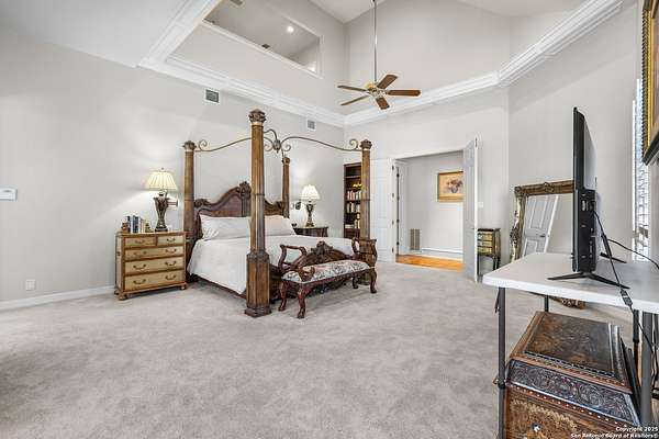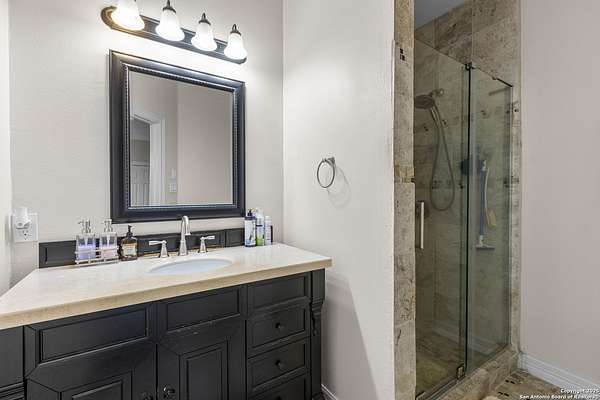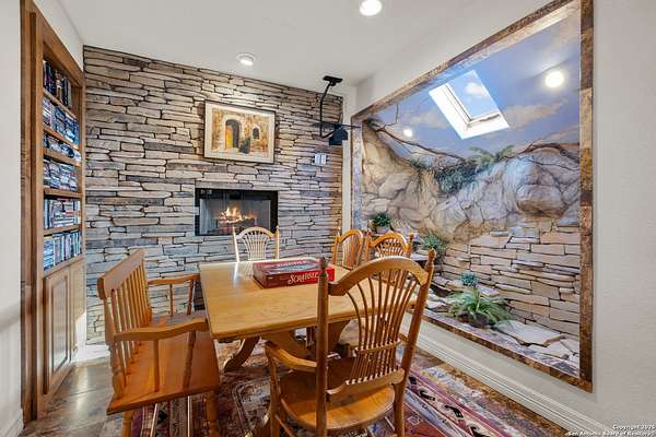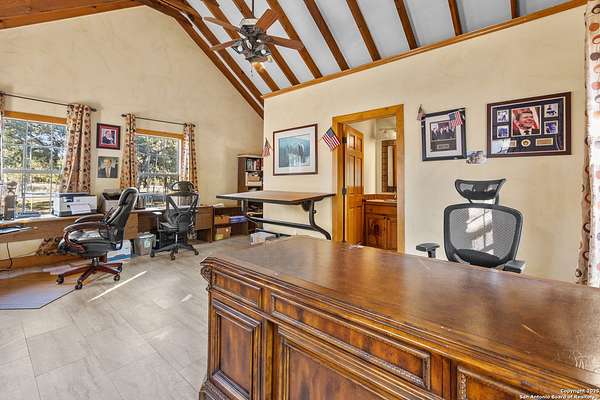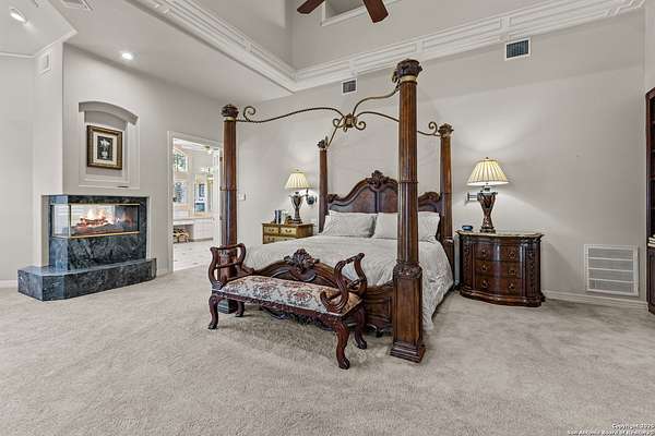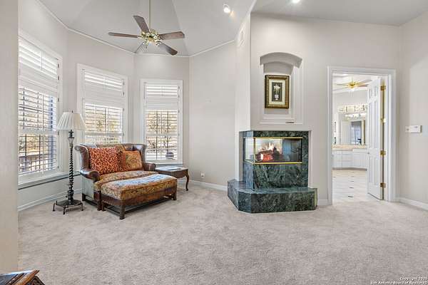 Hill Country Luxury on 6.6 Acres in Fair Oaks Ranch Discover a rare Hill Country sanctuary blending timeless elegance with natural beauty. Privately gated and nestled on 6.6 acres, this stunning estate in the heart of Fair Oaks Ranch offers refined living surrounded by mature oaks and serene views. Inside, a grand two-story foyer welcomes you with soaring ceilings, a graceful staircase, and abundant light. The formal dining room opens to a chef-inspired kitchen featuring a dramatic stone wall, large island with hanging pot rack, custom cabinetry, and built-in appliances. The kitchen flows effortlessly into the casual sitting area and breakfast room, creating a perfect space for entertaining and everyday living. Enjoy true indoor-outdoor living with a wrap-around patio and expansive deck complete with fire pit, hot tub, and generous seating-ideal for gatherings or quiet mornings surrounded by nature. The main living room offers Hill Country charm with a floor-to-ceiling fireplace, custom built-ins, and walls of windows overlooking the acreage. The primary suite is a private retreat with a sitting area, double-sided fireplace, and spa-style bath with soaking tub and dual vanities. A private staircase leads to an exclusive fitness room, sauna, and balcony-a peaceful hideaway for relaxation. The main level also includes a guest suite with en-suite bath. Upstairs, a secondary living area with fireplace, wet bar, and wine fridge sets the stage for entertaining. Two additional bedrooms each feature private baths and access to a wrap-around balcony. A flex room provides space for a game room, studio, or library. An additional detached dwelling offers versatility-ideal for a home office, guest space, or studio with half bath. With room to create a resort-style pool, cabana, or equestrian setup, this estate captures the essence of luxury Hill Country living. Residents of Fair Oaks Ranch enjoy access to the golf and country club, nature trails, and close proximity to Boerne and San Antonio's shopping and dining. This is more than a home-it's a statement of space, serenity, and sophisticated Texas living.
