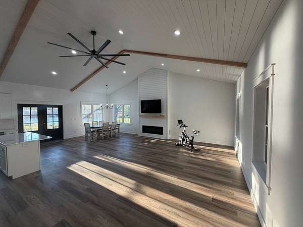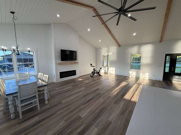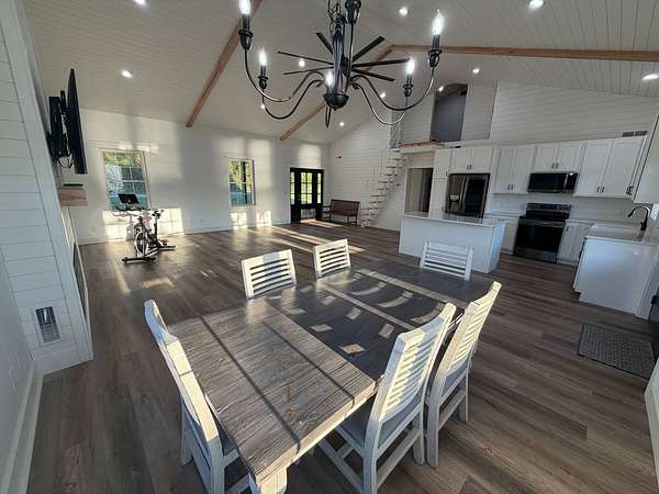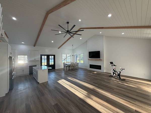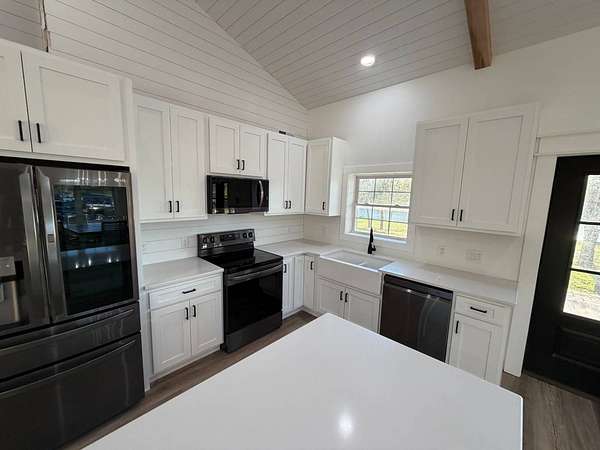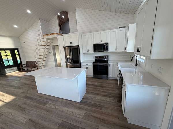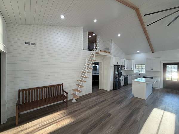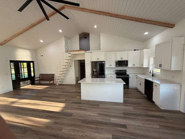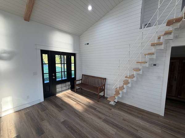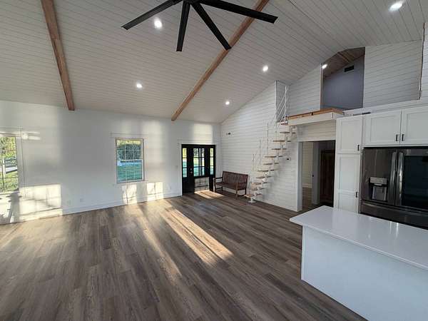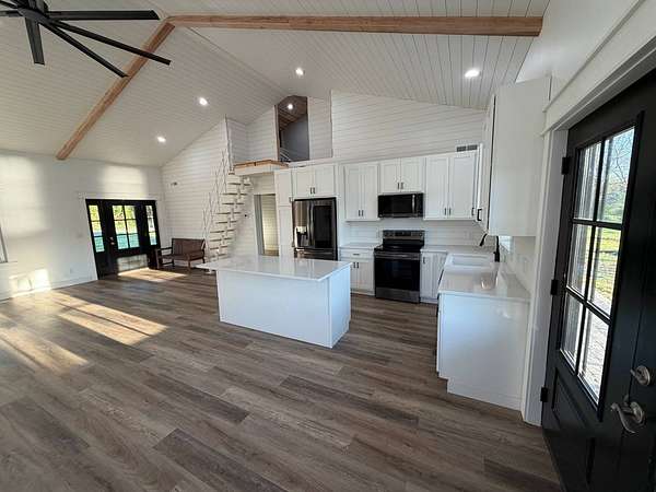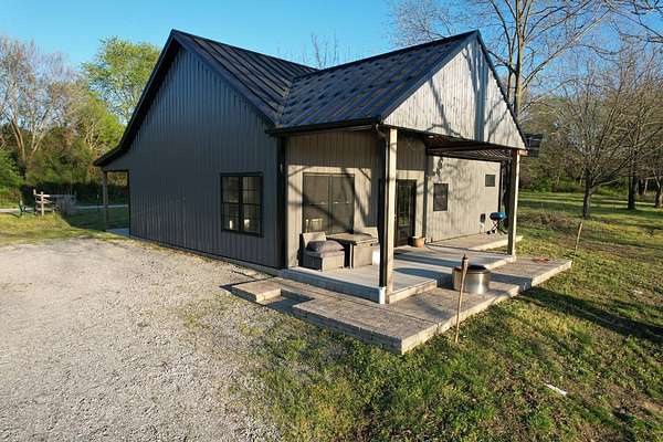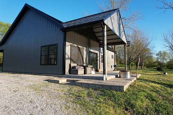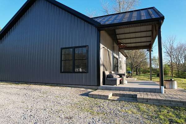 Discover an exceptional opportunity to own a private 35-acre retreat in rural Williamson County, Illinois, just minutes from Herrin. This thoughtfully designed property offers the perfect balance of modern comfort, natural beauty, and recreational potential - ideal for full-time living, a weekend escape, or a multi-generational family compound. At the heart of the property sits a beautifully crafted 1,200 square foot home featuring 1 bedroom and 1 bathroom with an open-concept floor plan designed to maximize space and natural light. Soaring vaulted ceilings create an airy, inviting atmosphere, while a spacious loft provides flexibility for a potential second bedroom, guest quarters, office, or hobby space. The interior is finished with high-end cabinetry, quartz countertops, and quality finishes throughout, blending modern style with rustic charm. Step outside to enjoy both covered front and back porches that overlook a stunning, stocked 5-acre lake. Whether you're sipping morning coffee, entertaining guests, or winding down at sunset, the peaceful water views and surrounding countryside create a truly relaxing setting. The lake offers excellent fishing and attracts abundant wildlife, enhancing the property's private retreat feel. The 35 acres provide a versatile mix of open ground and natural habitat, perfect for horses, recreation, and outdoor living. The property also offers excellent deer hunting opportunities, making it an ideal sportsman's getaway. With ample space for trails, food plots, pasture, or additional improvements, the land is well-suited for a variety of uses. Storage and functionality are unmatched with three pole barn garages, providing plenty of room for vehicles, boats, tractors, ATVs, and equipment. The layout of the property also allows for additional homesites, making it an excellent option for a family getaway, guest cabins, or future investment potential. Whether you're seeking a peaceful primary residence, a vacation property, hunting retreat, or long-term investment, this one-of-a-kind Southern Illinois property offers privacy, water, acreage, and modern amenities in a beautiful rural setting. Opportunities like this are rare - a turnkey home, stocked lake, usable acreage, and room to grow all in one exceptional property.