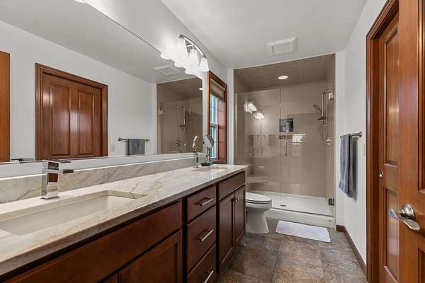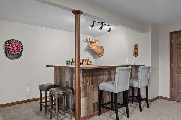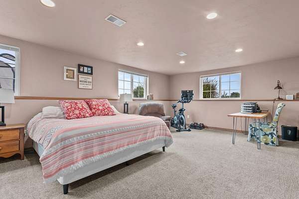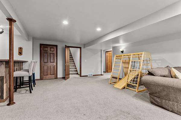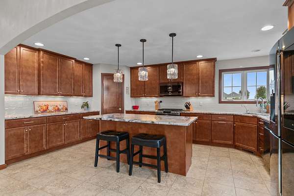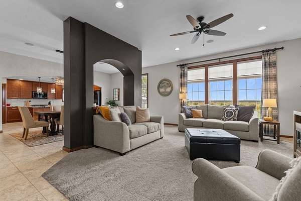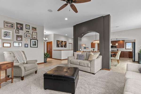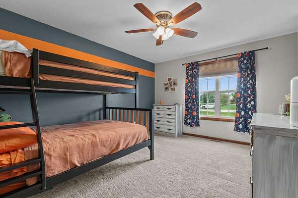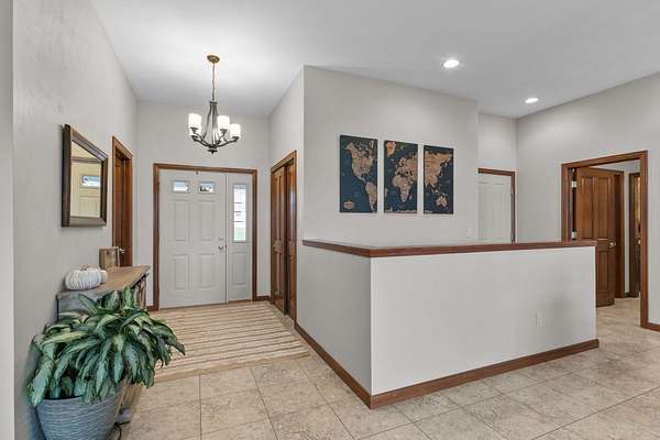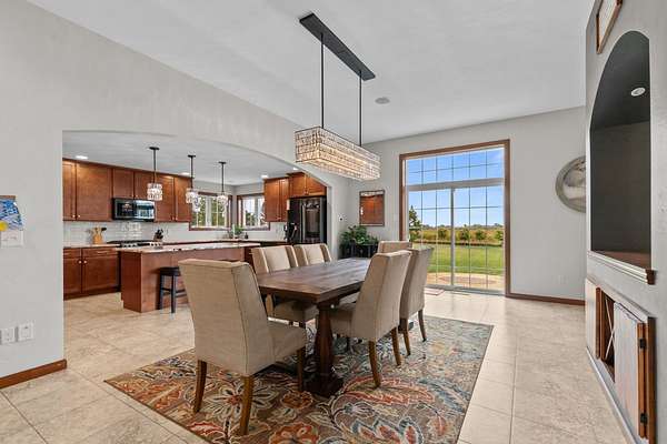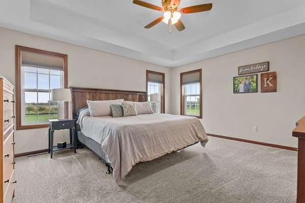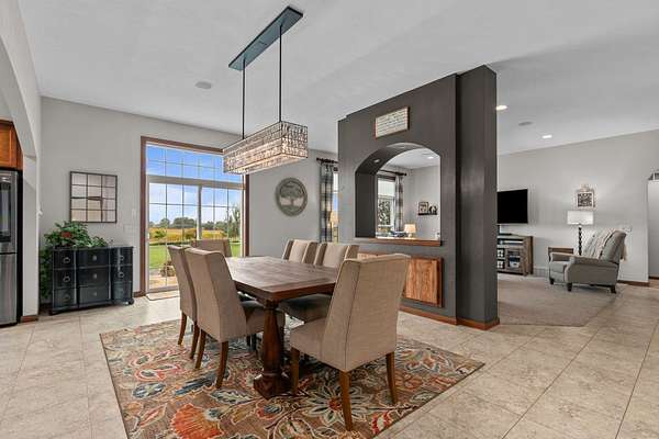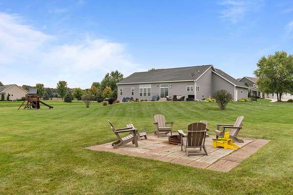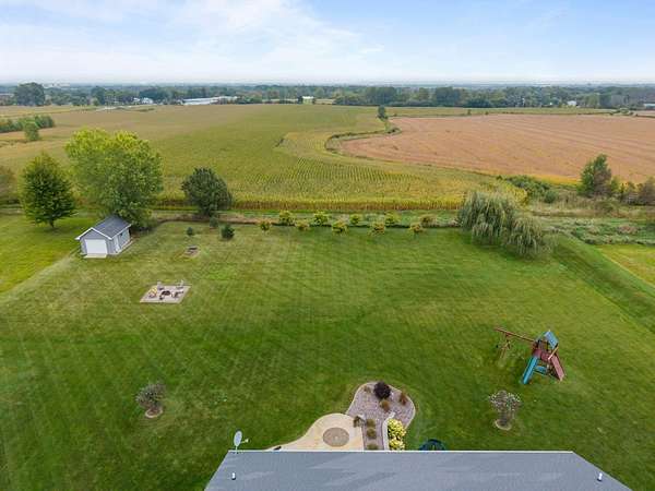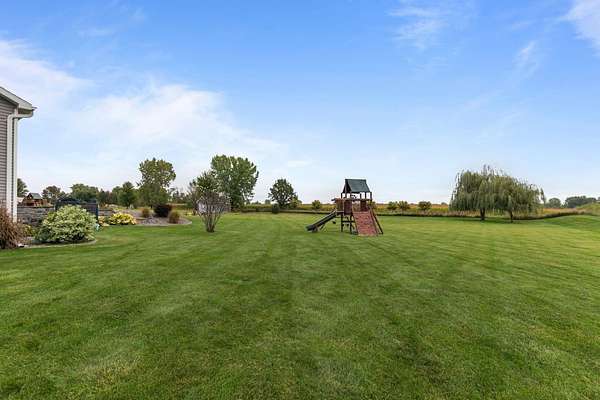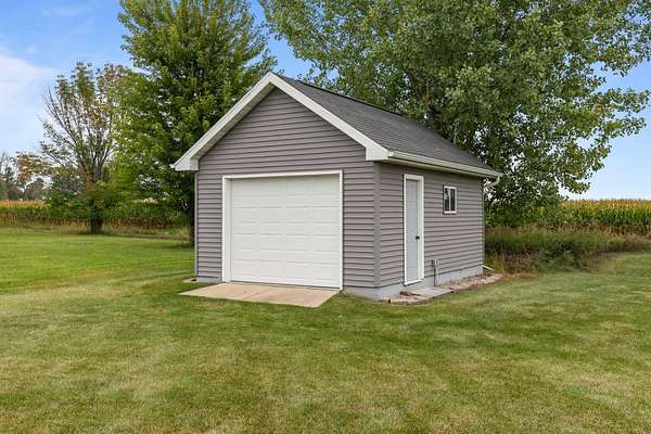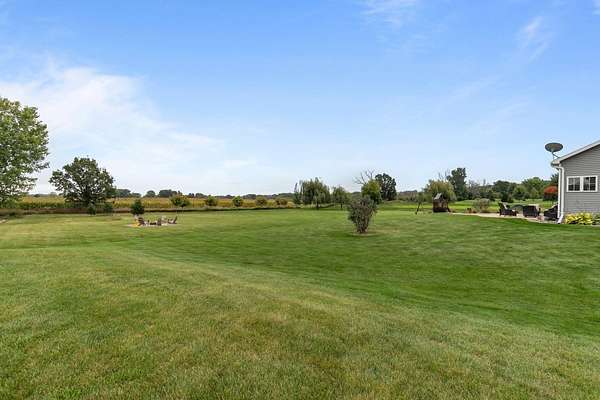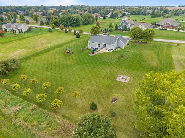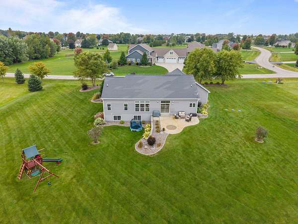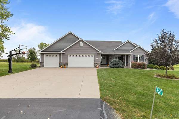Beautiful 4 bed, 3.5 bath ranch with over 3,200 sq ft on 1.63 acres backing up to a cornfield in a quiet rural subdivision. Just 0.5 miles from the new Neenah High School & Westridge Golf Course. This open-concept home features soaring 10-foot ceilings in the living, dining, and entry areas, creating a bright and spacious feel throughout. Large east-facing windows offer stunning sunrises. Main floor primary en suite, granite countertops throughout, and a finished lower level with bar, oversized bedroom, full bath, and ample storage. Detached 1-car garage perfect for extra storage or hobbies. Spacious, functional yard ideal for outdoor living. This is a rare opportunity to own a spacious, modern ranch home on acreage in one of the area's most sought-after locations!
