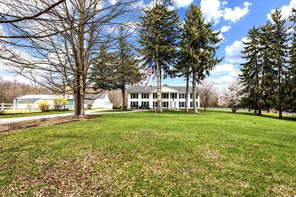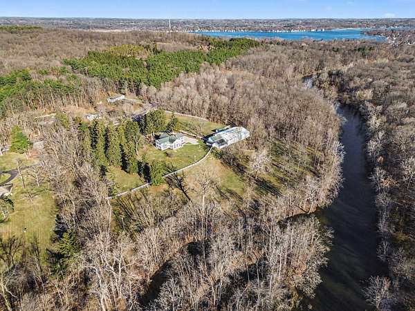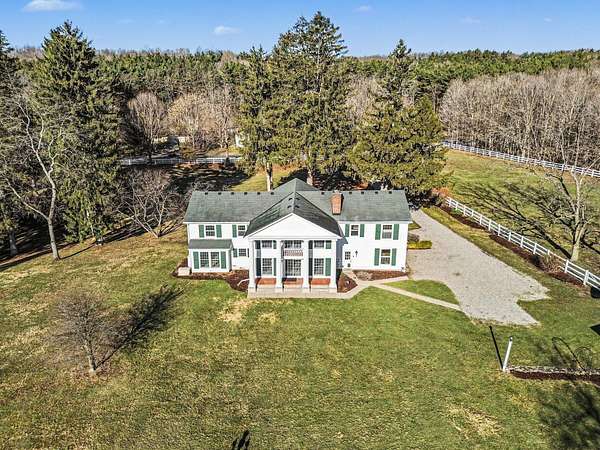 Introducing 8044 Dexter Pinckney Road, a once-in-a-lifetime riverfront estate where timeless character meets endless possibility. On the market for the first time in 57 years, this extraordinary property spans nearly 8 acres with almost 900 feet of private Huron River frontage, framed by Metropark land for unmatched privacy. A sweeping curved staircase welcomes you inside, where crown moldings, formal dining and living spaces, and a first-floor office set the tone. The family room, anchored by a fieldstone fireplace and exposed beams, opens to a sunlit breakfast nook and chef's kitchen with granite countertops and custom cabinetry. Upstairs, all bedrooms are thoughtfully placed, including a primary suite with a Romeo and Juliet balcony overlooking the manicured grounds and river. A private one-bedroom apartment offers flexibility for a caretaker or multigenerational living. The grounds include fenced pastures, multiple one-bedroom apartment provides flexible living options for guests, extended family, or a caretaker. Beyond the home itself, the land offers truly rare potential. With nearly 8 acres and exceptional river frontage, the property may allow a future buildable split, creating an ideal opportunity for a multigenerational estate, family compound, or additional homesite along the Huron River (buyer to verify with township). Properties offering this combination of acreage, extensive river frontage, long-term privacy from adjacent Metropark land, and close proximity to both Dexter and Ann Arbor rarely become available.