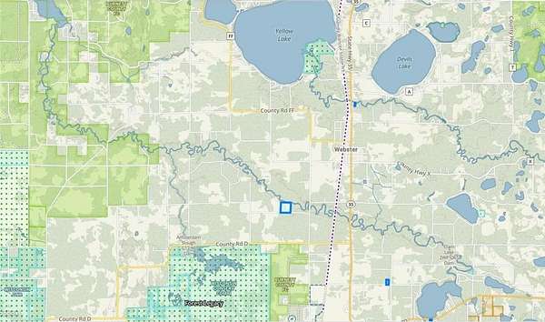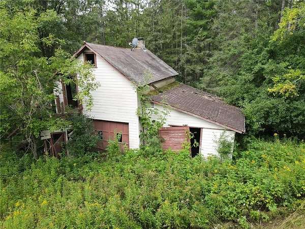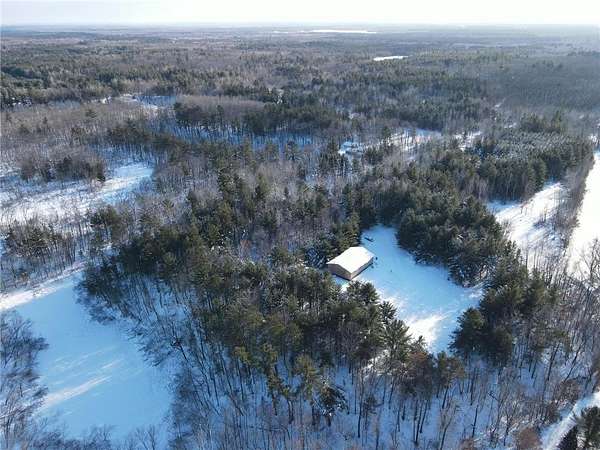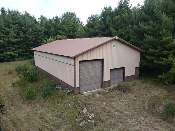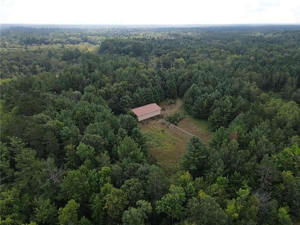 Discover a phenomenal 38.6-acre wooded retreat in Burnett County, offering over 375 feet of serene river frontage along the Clam River. This heavily wooded parcel is rich with mature timber, featuring stands of Norway pines, towering white pines, and massive oaks. The land's unique topography includes a prominent ridge that runs from the northwest to southeast corners, creating a striking landscape. Included on the property are a 64x46 pole shed with a cement floor and a 30x36 garage, providing ample storage and workspace. The sand-bottomed Clam River, which flows along the northern edge, offers ideal spots for fishing and swimming. With excellent deer, bear, and turkey hunting, as well as quality waterfowl hunting along the river and duck slough, this property is a hunter's paradise. The land is an open builder parcel and is not enrolled in any MFL programs. NOTE: The existing home is in advanced deterioration and will need to be demolished by the next owner. Located between Webster and Siren in the Town of Meenon, and just a mile from the Gandy Dancer State Trail, this property is also minutes from the area's renowned fishing and recreational lakes, including Yellow, Devils, Clam, and Big Sand Lake. Don't miss this incredible opportunity to own a piece of rural Burnett County!