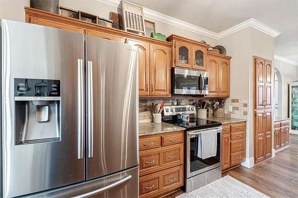 - Attic Storage, Blinds, Built-Ins, Cathedral Ceiling, Ceiling Fans, Corian Counters, Eat-in-Kitchen, Granite Counters, Ice Maker Connection, Pantry, Programmable Thermostat, Smoke Detector, Walk-In Closets