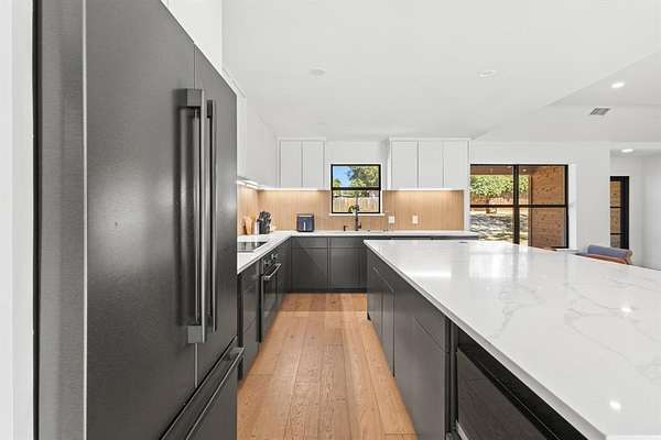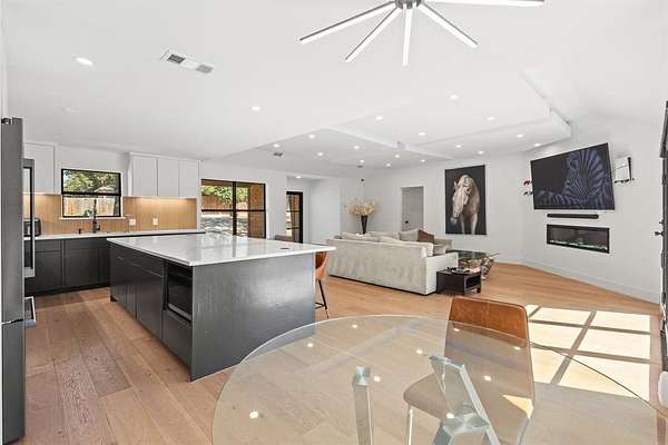 Acreage in the heart of North Richland Hills, this beautifully reimagined single-story home offers a rare combination of space, privacy, and functionality. Inside, the home's layout features spacious living areas, a cozy brick fireplace, an amazing raised ceiling in the living room and kitchen area, and all new flooring, windows and doors that fill the space with natural light. The gorgeous new kitchen is equipped with a built-in gas range, stainless appliances, and generous storage in the modern island, perfect for family gatherings and entertaining. The property includes a detached 2-car garage plus a detached 4-car garage workshop, providing ample room for vehicles, hobbies, or storage. Step outside to your own private retreat in the massive backyard ideal for kids, sports, or outdoor events. The lot's mature trees and open grassy areas create a serene, park-like atmosphere with room to expand, garden, or add a pool. Conveniently located off Davis Boulevard near schools, shopping, and major highways, this property blends country space with city convenience. A rare find with room to live, play, and grow in the desirable Birdville ISD.