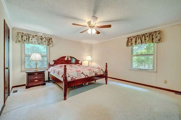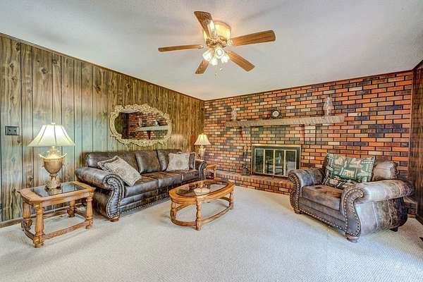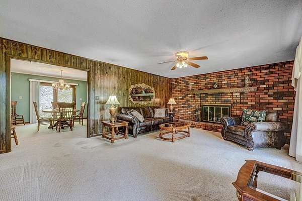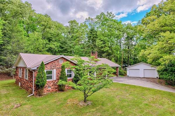 PRICE REDUCTION -Heart of Blue Ridge - This brick ranch style home sits on a hill with views on 2.5 acres- under 1 mile to downtown BR. With over 1700 square feet of living space this home includes 3 bedrooms, 3 baths,24X28 garage/storage building, carport(19X24) as well as paved driveway and gentle lay of land. There are large windows for ample natural light. HVAC replaced 2017 and metal roof replaced in 2012. As you enter you will find an inviting living room with brick wood burning fireplace. The dining room area off the kitchen is spacious and accommodating. The kitchen 22X 11 also includes a dinette area. Off the kitchen is a laundry room as well as a full bathroom. The 3 bedrooms and additional 2 baths are on the opposite side of the home for privacy. There is a front and back porch for enjoyment. Beautiful lay of the land perfect for gardens, pets etc. Come see this great property in a prime location!