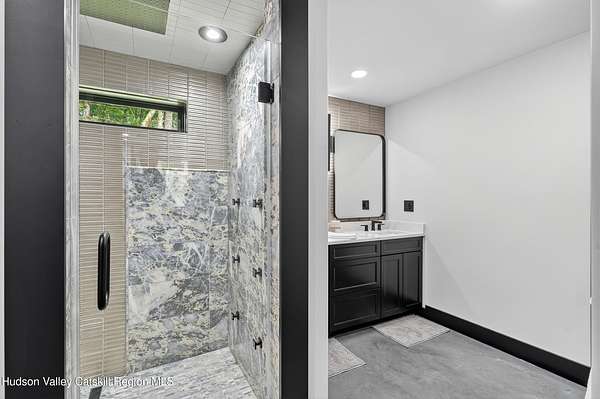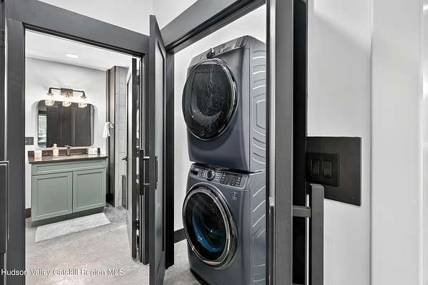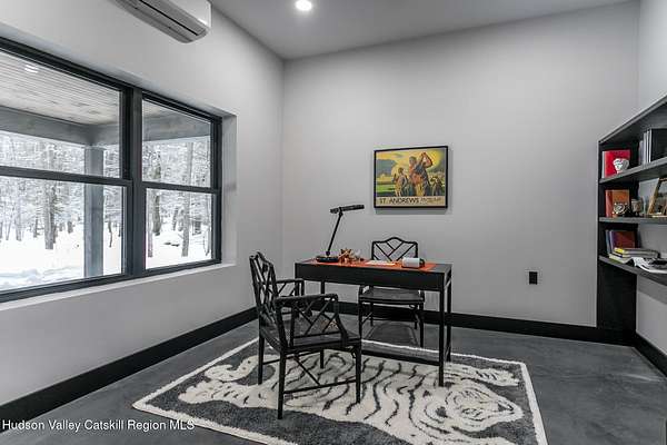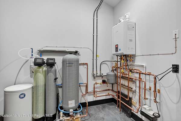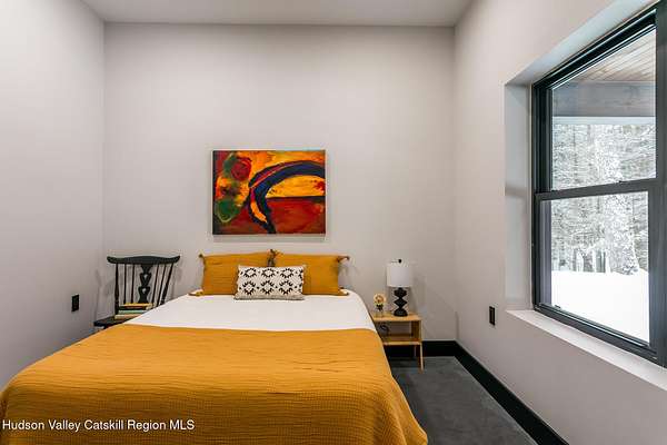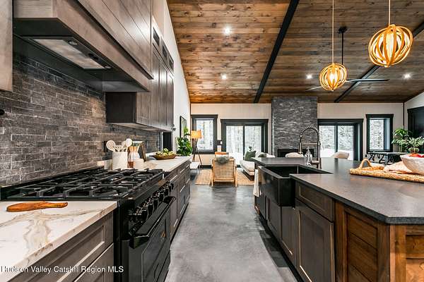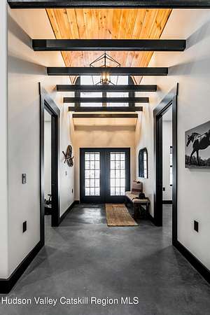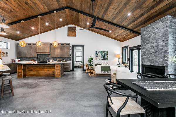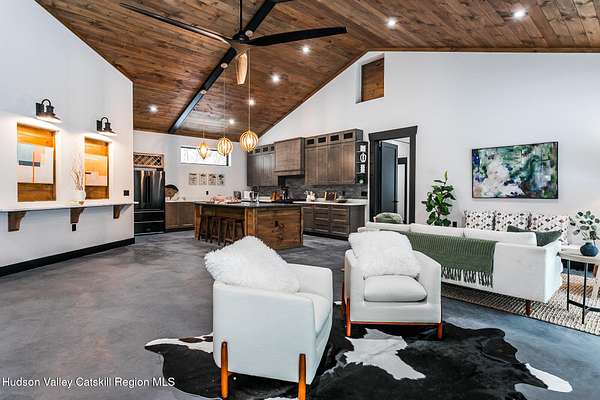 Your oasis away from the hustle and bustle is finally here. Identified as Walnut Woods for its scenic outdoor exposure, this 2,160 square foot new construction home boasts 3-bedrooms and 2-bathrooms. Its open concept, single-level living space is exactly what you have been waiting for. Crafted and curated by Hamlet Builders, the Black Diamond model is nothing but a complete display of upscale excellence. Arriving on site, you will recognize the outdoor living space ready for rocking chairs on your covered porch and tremendous stamped concrete patio wrapping around the home. Greeted by 18-foot cathedral ceilings and paired with a pergola style entryway, the eye instantly catches the bold accents displayed in the entire home. 2 bedrooms towards the front of the house fit for guests, office space or even full-time living usage ensure the split floor plan is perfect for working from home, or guests separated from the primary bedroom. Moving forward into the main living area, your eye will instantly recognize the wood-stained ceilings, upscale Modern Forms lighting and a ventless propane fireplace for all to gather. Accompanied by black radiant heated, concrete finished floors, exorbitant shaker doors and trim an incredible kitchen suited for a chef, this home really checks all the marks. Enjoy cooking with top-of-the-line Z-LINE appliances, plenty of counter space and even a fully lit breakfast bar, while enjoying the open concept of this home. The primary suite is more like a retreat with a tastefully designed diamond-shaped accent wall, double closets and a step-down, marble-tiled rain shower with 7-additional heads creating your own spa right in your primary bathroom. Bringing the outdoors in, enjoy secluded nature views of the 2-acre parcel though the double sliding glass doors. Moving outside, enjoy plenty of exterior space to have an outdoor kitchen and entertaining area perfect for many summer memories to come on your stamped concrete patio. 805 Kripplebush Road backs up to over 100 acres of privately owned land, making the backyard a place where you can truly be in nature. Conveniently located, this home is just a short drive to local hiking hotspots, scenic trails, great restaurants and breweries and everything the Hudson Valley has to offer.