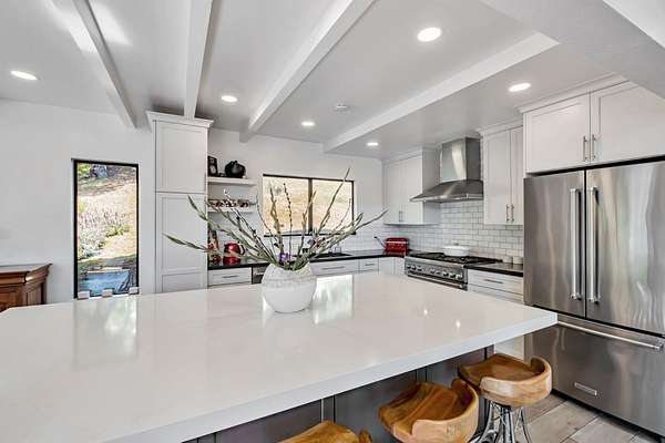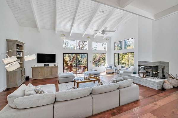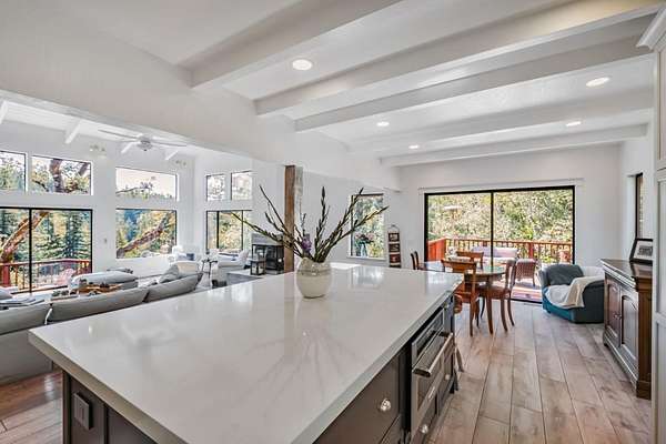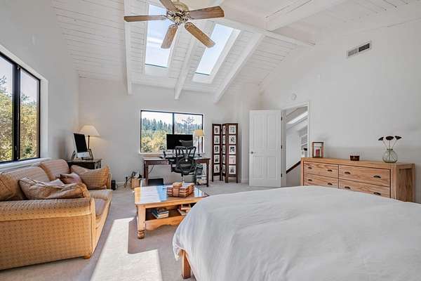 Sophisticated living in a tranquil and blissful setting. This beautifully crafted home offers 2,790 square feet of refined living space, set on a sprawling 2.13-acre lot with an additional 7.17-acre parcel A perfect blend of luxury and nature.Step inside to discover an open floor plan filled with natural light, thanks to abundant windows and skylights. The home features 4 spacious bedrooms and 2.5 elegantly designed bathrooms.Open beam ceilings and hardwood floors enhance the modern aesthetic, while fresh paint and new plush carpeting add a touch of contemporary comfort.The dream kitchen, just recently remodeled, is equipped with state-of-the-art amenities, ideal for both daily living and entertaining. Enjoy cozy evenings by the fireplace or stay cool with central air conditioning.Outside, a large deck provides the perfect setting for gatherings, overlooking expansive natural surroundings. A separate workshop offers potential for a wine cellar or extra storage, accessible from the garage.Conveniently located just 20 minutes from downtown Los Gatos, this home is a haven for those seeking tranquility with easy access to city life. Don't miss the opportunity to own this stunning property. Loma Prieta,CT English Middle and Los Gatos High.