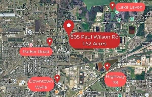 Move-In Ready 3 Bedroom Home on 1.62 ACRE Corner Lot. Rare Opportunity Near Historic Downtown Wylie. NO HOA**FLEXIBLE LAND USE. Location is fabulous - in highly-desired Wylie ISD. This is a growing area of Collin County – near the Parker Road Expansion and Highway 78. Potential uses include RESIDENTIAL, BUSINESS, COMMERCIAL, AGRICULTURAL, LIVESTOCK, STORAGE, REDEVELOPMENT, OR INVESTMENT. Corner Lot has 515 x 127 feet of road frontage. The WELL-MAINTAINED 1650sf brick home offers 3 bedrooms, 2 bathrooms, attached 2-car garage, large living room with brick wood burning fireplace, storage barn, fenced backyard, 7-zone sprinkler system, plus plenty of open space to roam. Bring your horses. Enjoy fishing, boating, and equestrian trails at Lake Lavon just minutes away. Enjoy shopping, dining, and events in Downtown Wylie just blocks away. Less than 30-minutes to world-class shopping and dining in Plano, McKinney, or Rockwall; as well as the Tech Corridor in Richardson. STRATEGIC LOCATION in St Paul, outside of Wylie but within the city’s development nearby. Update, expand, or reimagine to fit your vision and your needs. Located among acreage tracts surrounded by growing subdivisions, and near new commercial development, this is a true transition zone with upside potential. Ideal for a contractor yard, landscape business, storage or equipment yard, plumbing or pool company, business headquarters, live-work concept, or family compound. Great location with easy access to the entire DFW Metroplex via 75-Central Expressway, George Bush Turnpike, and Highway 78. Less than 1 hour to DFW Airport and Downtown Dallas. *Live*Work*Invest*Expand* Properties with this level of freedom, flexibility, and location are RARE. Come see it today!
