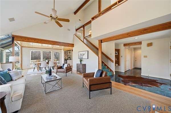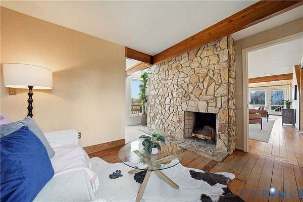 Welcome to 805 Rockford Road, a Wintergreen resort-style home tucked away in the heart of Manakin Sabot. This charming retreat offers the perfect balance of privacy and comfort surrounded by serene surroundings. This 4 bedroom home offers the perfect blend of comfort, space, and natural beauty. The heart of the home features an open kitchen flowing into a cozy family room, built ins, and anchored by a stone fireplace, ideal for gathering. Enjoy peaceful mornings on the screened in porch, overlooking beautiful gardens and a fully fenced in yard. Up stairs features three bedrooms and a loft area perfect for a child's study or a sweet reading nook. The finished basement expands your living space with a large den, another stone wood burning fireplace, two additional flexible areas perfect for bedrooms, an office, workout area or create space for extended family. All fireplaces, chimneys and flues convey in as is condition. Detached barn conveys as is. Delayed showings to begin March 7th.