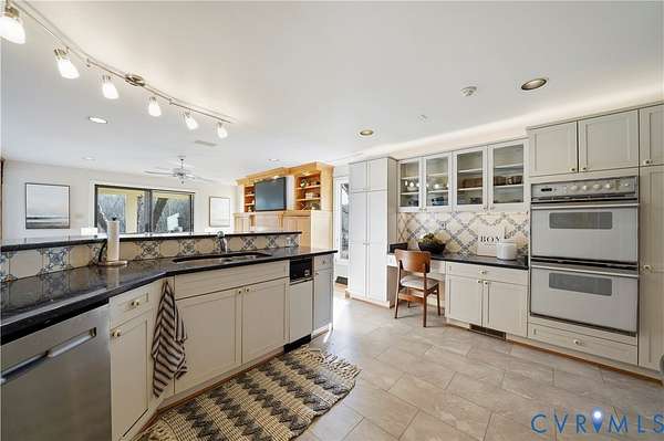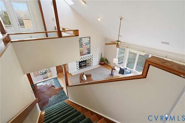 - Bedroom On Main Level, Bookcases, Breakfast Area, Built In Features, Cathedral Ceilings, Ceiling Fans, Fireplace, Granite Counters, High Ceilings, Loft, Pantry, Walk In Closets
