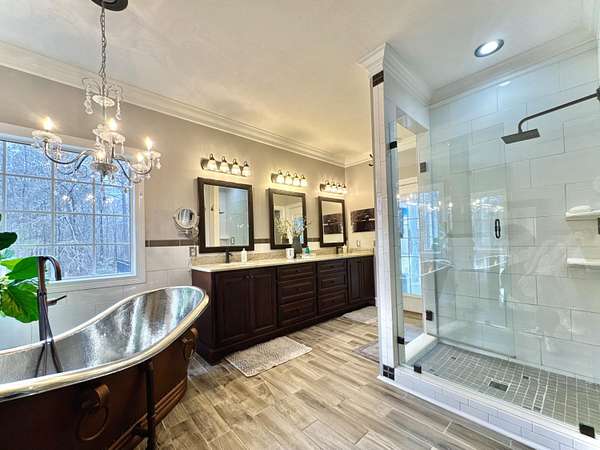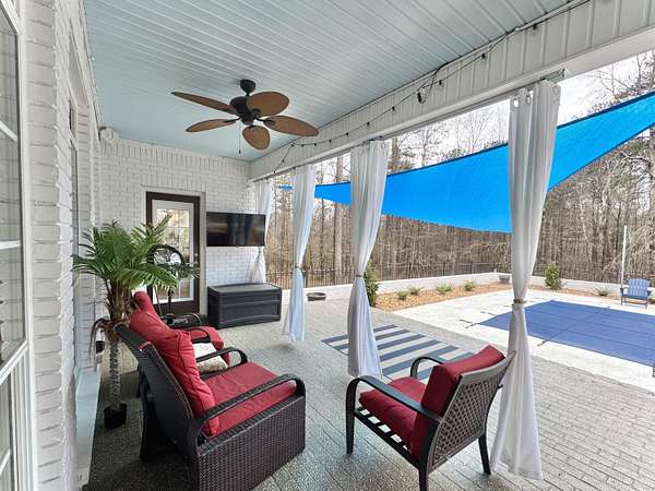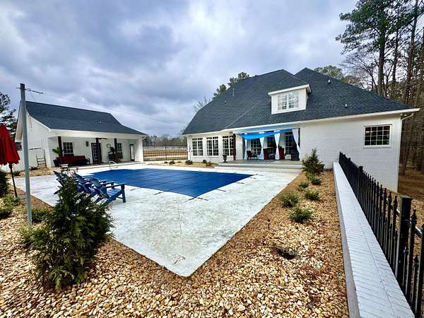Est $3,491/moBEAUTIFUL PRIVATE SETTING ON 6.7 ACRES IN EXCLUSIVE TIMBER CREEK SUBDIVISION. NEW HOPE SCHOOL DISTRICT. Exterior and interior freshly painted. Large open kitchen with granite countertops with stainless appliances overlooking pool area. Primary bedroom on main floor with ensuite bath. 30X30 brick pool house with full bath with extra 2 car garage. Upstairs features 3 bedrooms each with a private full bath and walk-in closet. Roof is 5 years old; 2 tankless water heaters. Pool house is not included in square feet. Truly a must see.