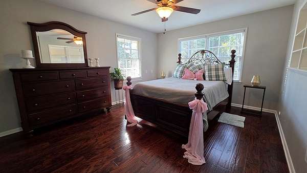 - Blinds, Ceiling Fan(s), Walk-In Closet(s), Wood Floors, Wood Stove