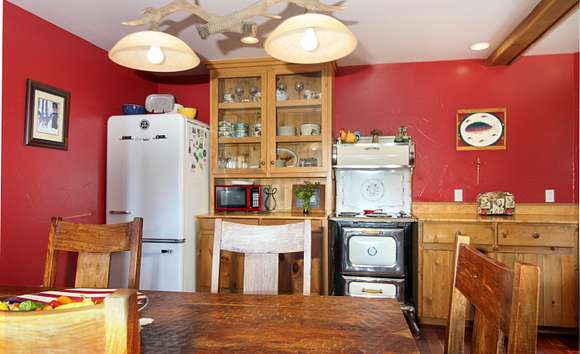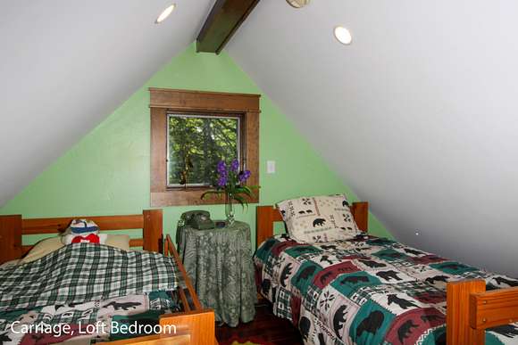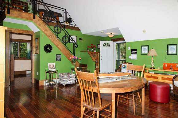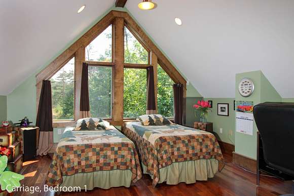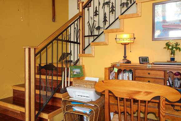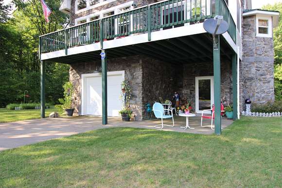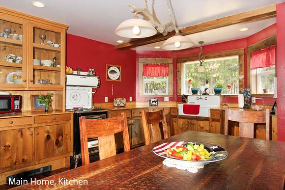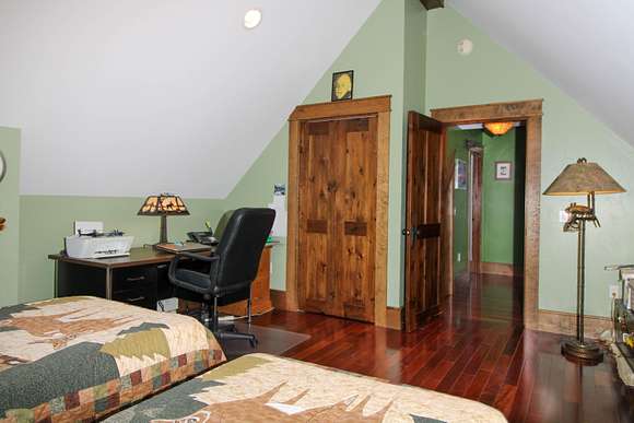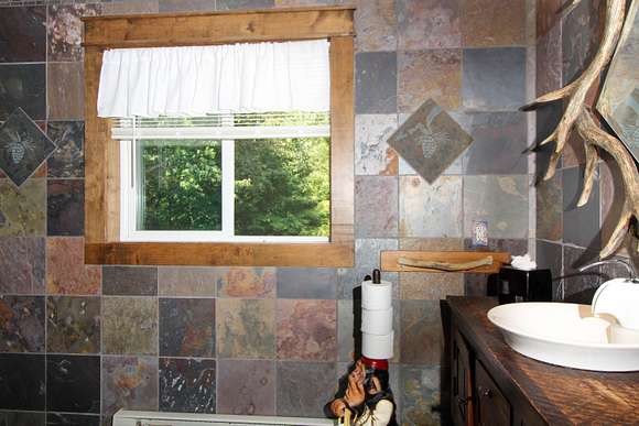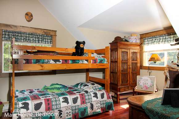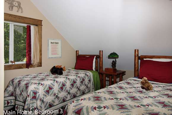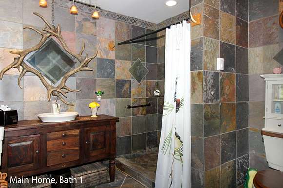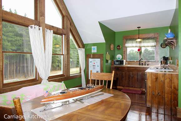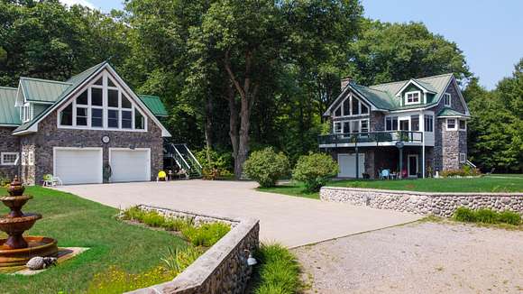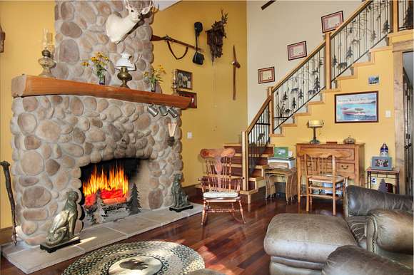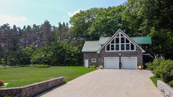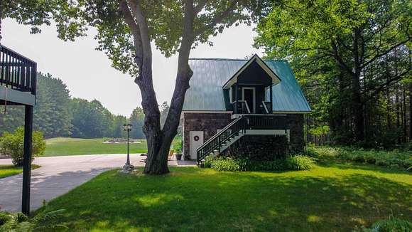 MOTIVATED SELLER! Gray Stone Manor epitomizes the style, craftsmanship, and unique setting that define a true Northern Michigan hunting ranch. The property is named after the intricately constructed stone exterior adorning both residences, with the main home offering three bedrooms, and the carriage house an additional two-bedrooms-plus-loft. The main home is distinguished by a vaulted living room, floor-to-ceiling fieldstone fireplace and locally harvested cedar mantle; both structures feature rosewood flooring, maple window frames and floor trim, and artisan-made metal stairway railings, each with its own theme that exemplify two of the owners' passions: wilderness & automobiles. There are