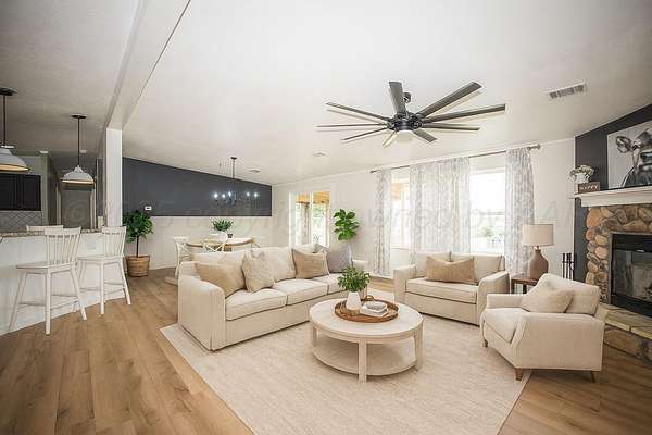 Enjoy peaceful country living in this beautifully updated 4-bedroom, 2-bath home sitting on 5 unrestricted acres! Completely remodeled in 2023 with new flooring, interior and exterior paint, updated light fixtures, granite countertops, new sinks, and appliances. In 2024, even more upgrades were completed: new roof, back deck, well pump and motor, and fenced pasture ready for your animals! Spacious open-concept layout with an isolated master suite, dedicated office, and plenty of natural light. There's also a barn for your livestock or extra storage.
