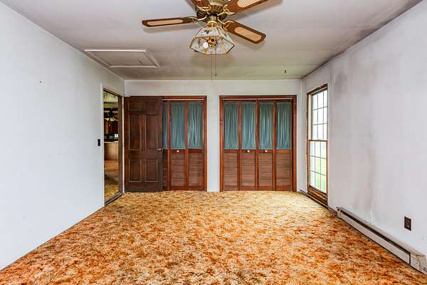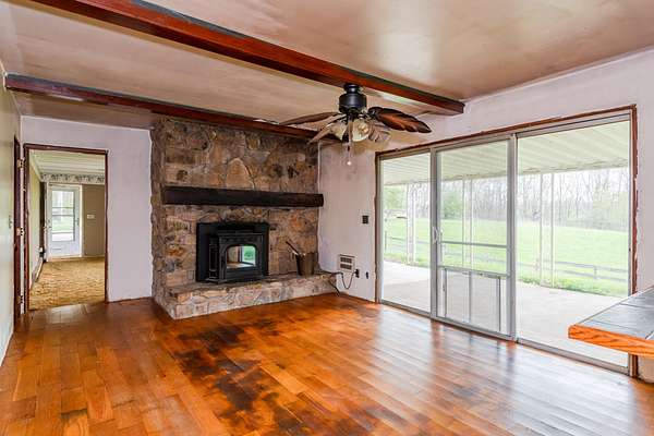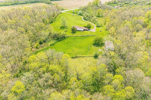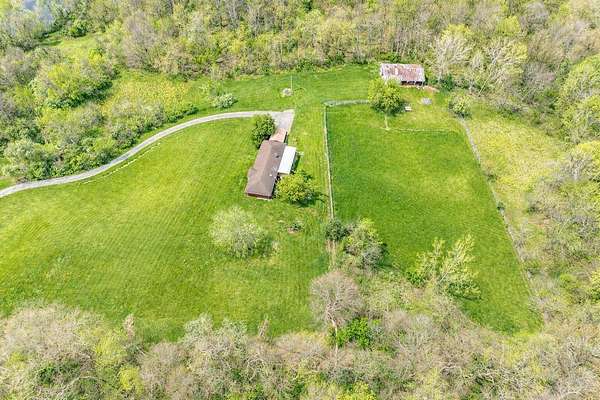Perched on 9.813 scenic acres of rolling hills and mature woods, this one-of-a-kind property offers breathtaking views in every direction and a level of peacefulness that's hard to find. Tucked away at the end of a long driveway, the setting feels like you're living in the clouds--or in the foothills of a mountain range. The 1,900+ sq ft ranch home is thoughtfully positioned to capture the surrounding landscape from nearly every angle. Featuring four bedrooms and two baths, the home offers an eat-in kitchen with a pellet stove that serves as the primary heat source, newer vinyl siding, and a convenient carport. While the home and barn need some work, the bones and setting present an exceptional opportunity to create something truly special. The barn includes six stalls and a tack room, reflecting the property's long history as a place for horses, dogs, and country living. Lovingly held by the same owner for over 30 years, this is a chance to own a property where the layout, views, and privacy, come together in a way that simply can't be replicated. A setting this beautiful is rare--and unforgettable.