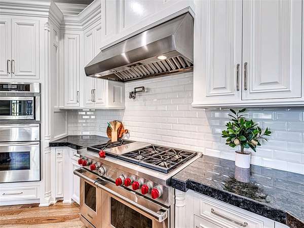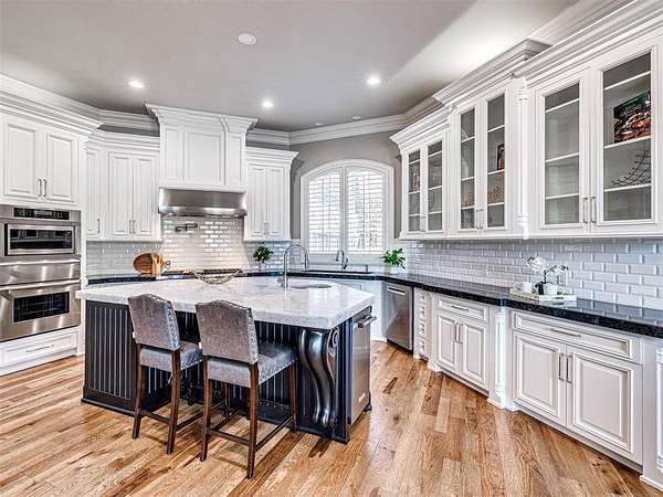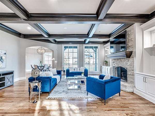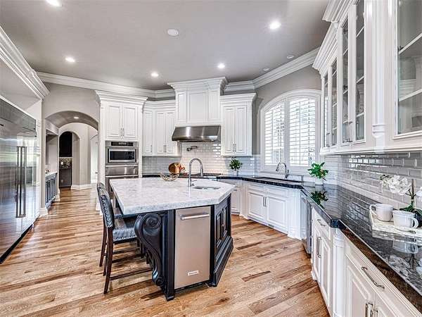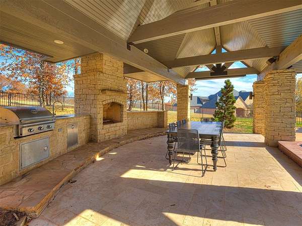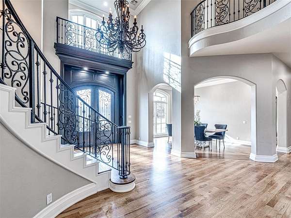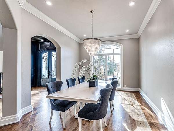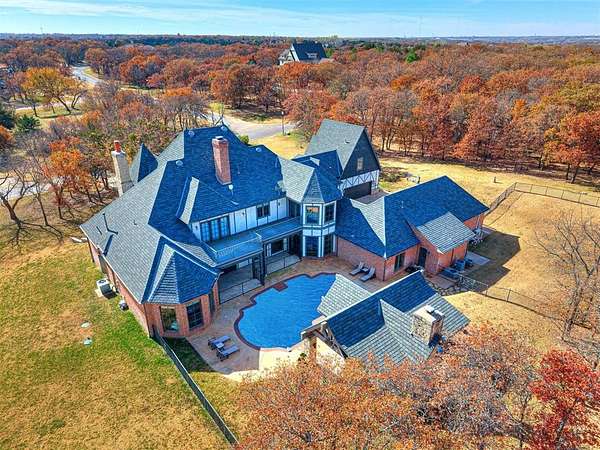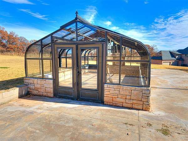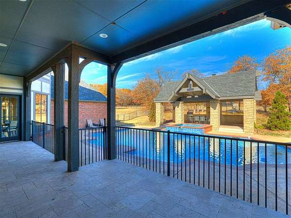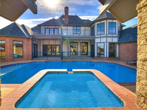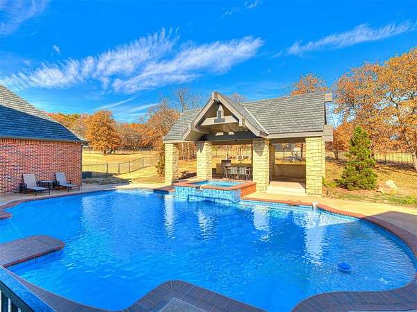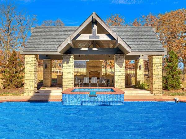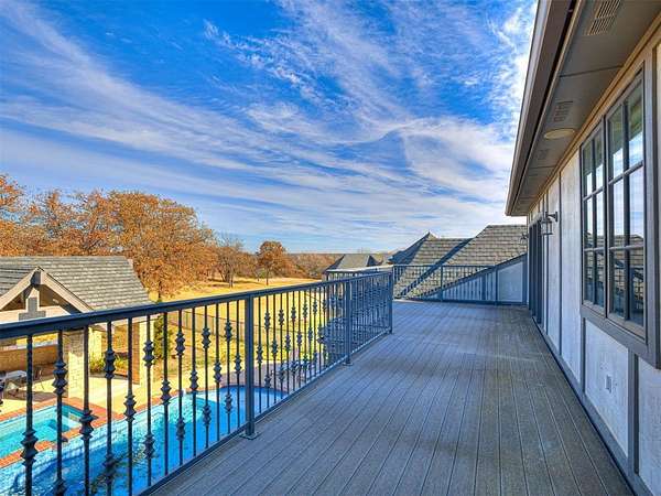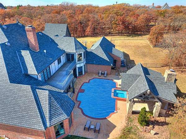 Introducing 8051 Falcon Crest, an impressive 2+ acre estate in East Edmond's esteemed Eagles Cove community. This incredible buy features a fully-loaded 7,690 sq.ft. home complete with a pool, hot tub, dedicated full pool bath, outdoor kitchen & living area, commercial grade greenhouse, 6 car-garage & car court, backing to the Lake Arcadia Nature Preserve! Inside the sprawling home, five en-suite bedrooms are situated among a well-appointed study, upstairs bonus room, weight room, billiards room, and 3 half baths. The soaring ceilings of the entryway are anchored by a show stopping chandelier and accented with a grand, winding staircase. Floor-to-ceiling windows allow natural light to pour into the main living room. The kitchen is a chef's dream with stainless steel Wolfe commercial range and double ovens, Thermador microwave, convection oven, & warming drawer, 48" double-door Subzero refrigerator/freezer, under-counter ice maker, stylish 3 cm quartz counter tops, butler's pantry, and coffee bar. A designer bathroom with magnificent marble floors, beautiful built-ins, & dressing area, separate closets, sitting area, and access to the patio complete the outstanding owner's primary suite. Rounding out the first floor is a private suite, an additional living room, two dining rooms, and an enormous laundry room perfect for running a household of this magnitude. The extensive patios and balconies overlook the resort-like pool and hot tub of the backyard. Situated in Edmond Schools and Edmond city service limits, Eagles Cove is a wooded enclave just minutes from Memorial & I-35 - making access to anywhere in the metro a breeze while providing seclusion, security, and tranquility. This exceptional home is being offered at an equally exceptional price - don't miss your opportunity to make Falcon Crest your home.