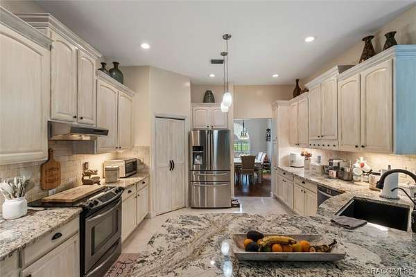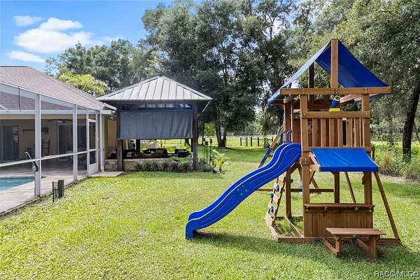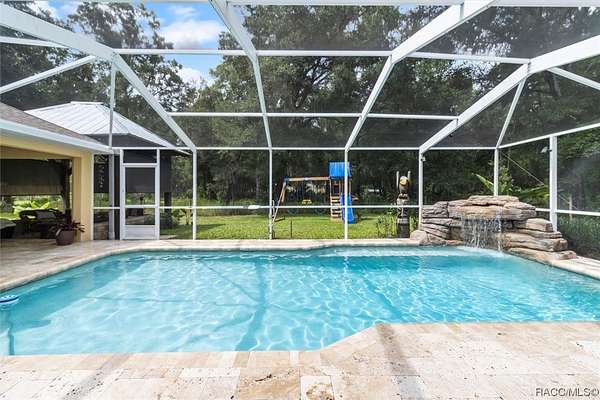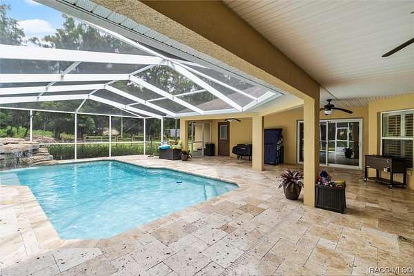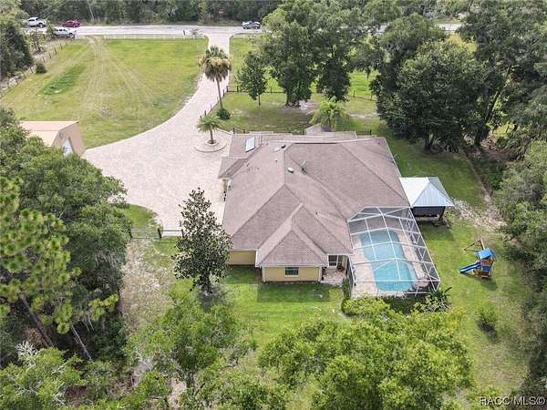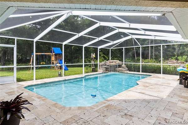Welcome to this stunning home offering quiet country living while being close to town! 8051 North Neige Point, is a stunning 3 bedroom, 2.5-bathroom home with an abundance of features and amenities to offer. This beautiful property boasts 2,963 sq feet of living space, as well as an expansive 5-acre lot. You'll notice the tastefulness of this property as soon as you enter down the 15,000 Sq Ft paver driveway. The interior of the home features granite countertops, split floor plan, custom blinds, wood and porcelain flooring. Outside, you will find an inground pool with travertine stone deck with a waterfall feature that will calm even the longest of days! Off the pool deck you can enjoy your custom propane fire pit within the screen enclosure. The property also includes a detached 30x40 garage with an RV lean-to for added storage or recreational space. This incredible property is the perfect retreat for anyone looking to enjoy the peace and serenity of nature while still being close to all the amenities of city living. With its close proximity to schools, shopping centers, and parks, this home offers something for everyone. Just minutes from several state parks, hiking / biking trails, rivers, lakes, fresh water springs and the Gulf of Mexico. Enjoy world class fishing, boating, swimming, diving, paddleboarding, kayaking, scalloping AND swim with our world famous manatees! Quiet, small town living, while only being a 1 hour drive to Tampa and 1.5 hour drive to Orlando!