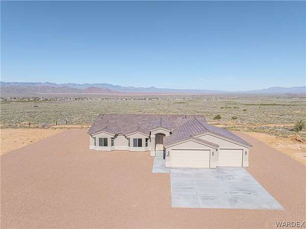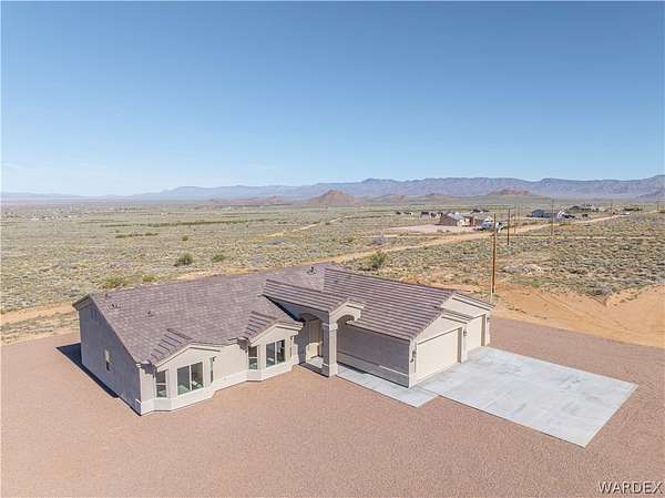 Home on Acreage with Panoramic Mountain Views!! Come see this amazing new home that sits on 5.41 acres off of Historic Route 66This property is located in a small and unique community that only consists of 15 homes on 5 plus acre lotsThis community backs up to hundreds of acres of vacant land owned by the stateThe home has 1833 sq. ft. 3 bedrooms 2 bathrooms and a deep 3 car garage with 8 ft high garage doorslots of natural light throughout the homewide doorwayssome archedTile Floors throughout/no carpetLarge kitchen with thick granite countertopsstainless steel appliancessoft close cabinets with slide out shelves Walk in PantrySpacious bedrooms with beautiful guest bathroom with linen closetsLarge primary bedroom with private access to the large covered patio allowing you to see the panoramic mountain views!! Spacious primary bathroom consists of dual vanity sinks and granite countertops tiled walk-in shower with glass doorLarge laundry room with cabinets and sink Nice level rocked lot with acreage for anyone with horsesRV's or those Desert toys!! This home comes with the 2 year builder warranty and an additional 4 year aftermarket warranty that starts after the first yearOversized septic tank so a casita or detached shop could be added at a later dateYour GPS may not be accurate for this location. Make note of Directions!! Take Route 66 to mile marker 73 (exactly 2 miles past the Valle Vista turn), turn left onto E. Darius Drive, property will be on the left. Check with your agent to get more details! Community is 15 minutes from shopping Kingman itself is about 35 minutes from Lake Mohave near Bullhead City and Laughlin1 hour 15 minutes to Lake Havasu2 hours to Las Vegas2 1/2 hours to Flagstaff2 hours to the Grand Canyon**