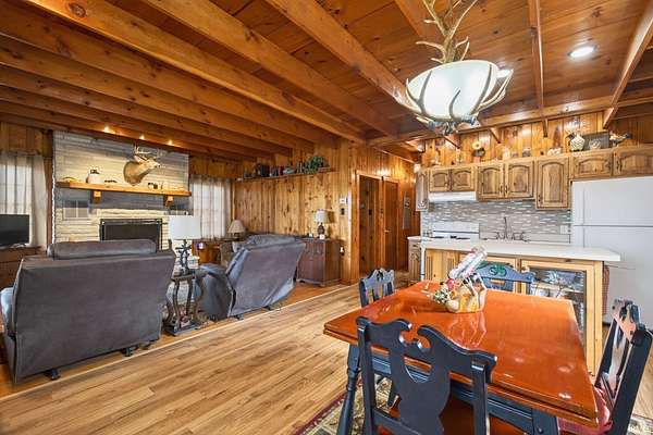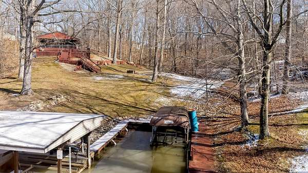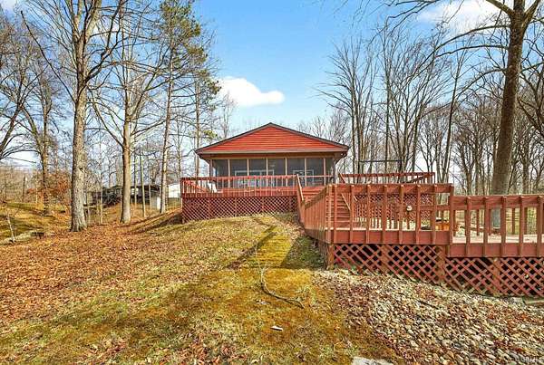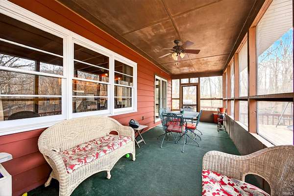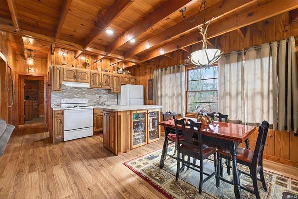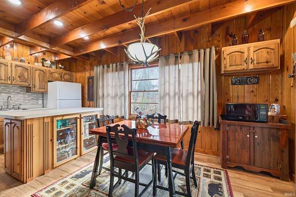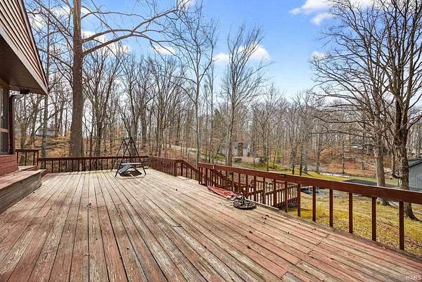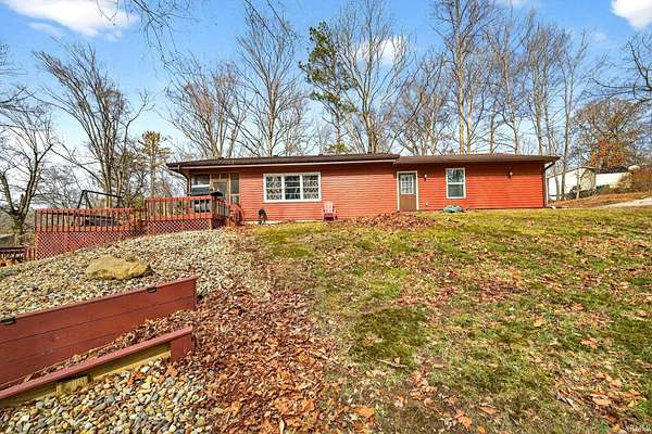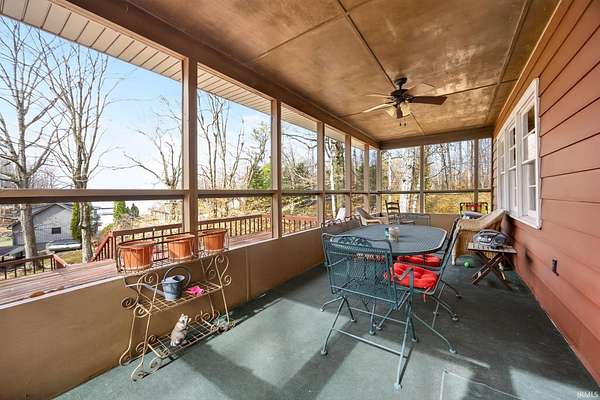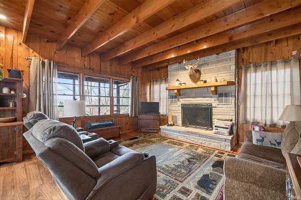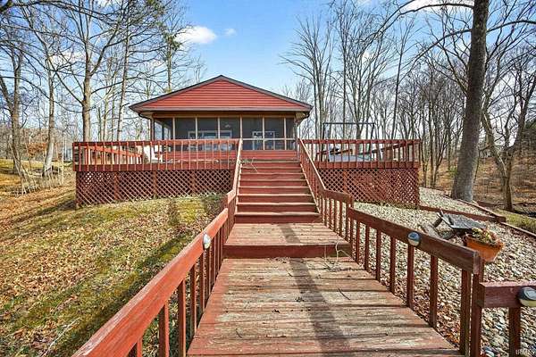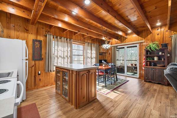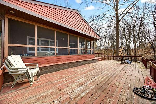 Welcome to your lakeside escape on beautiful Lake Lemon. Nestled at the end of the drive on 1.73 acres with partial woods for added privacy, this charming 2-bedroom, 1 1/2 bath home offers perfect blend of relaxation and outdoor adventure. Spend your mornings on the screened in porch and your evenings entertaining on the spacious deck. Enjoy gathering around the lakefront firepit or head down to your own private boat dock. Inside, you'll appreciate the cabin feeling with all the wood, open concept living and enjoy the cool nights sitting in front of the wood burning limestone fireplace. Updates include plumbing and new electrical. Home comes completely furnished! This home would make a great vacation property, Airbnb or year-round living.