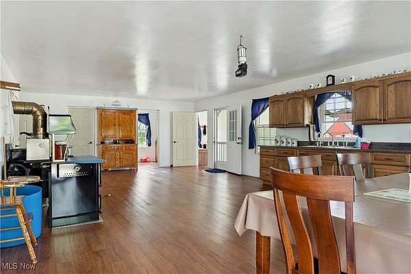 Charming 4-Bedroom Home on 19 Acres with Barn, Shop, and Endless Potential! Built in 2019, this spacious 4-bedroom, 1-bath home sits on 19 beautiful acres and offers the perfect blend of comfort, functionality, and rural charm. The open-concept kitchen and dining area flow into a cozy living room, while the full basement includes a can cellar for added storage. A large partial wraparound front porch provides the ideal spot to relax and enjoy the peaceful countryside. Outdoors, you'll find a garden space, an 7-stall horse barn, and a large multi-purpose shop with semi-truck access, loading dock, walk-in cooling room, utility sinks, and its own bathroom-perfect for agricultural use or hobby operations. Whether you're looking for a working farm, a private homestead, or an investment with room to grow, this versatile 19-acre property has it all. Please note: Parcel number reflects acreage owned and price reflects acreage selling. Actual acreage subject to final survey.