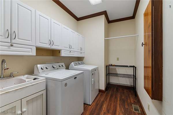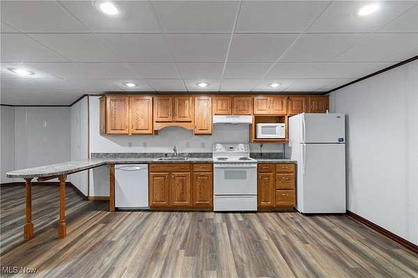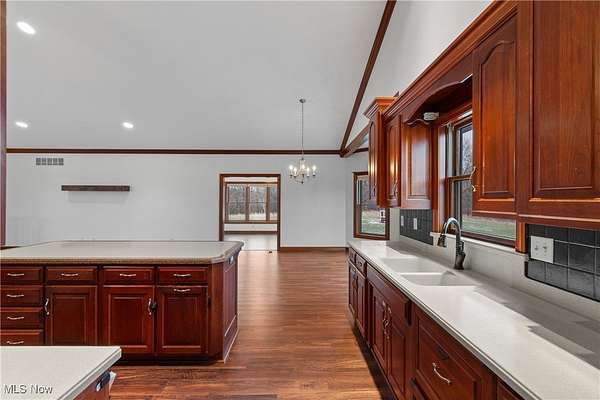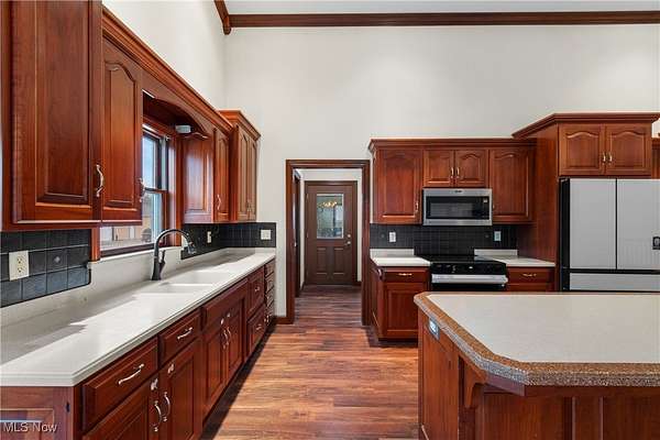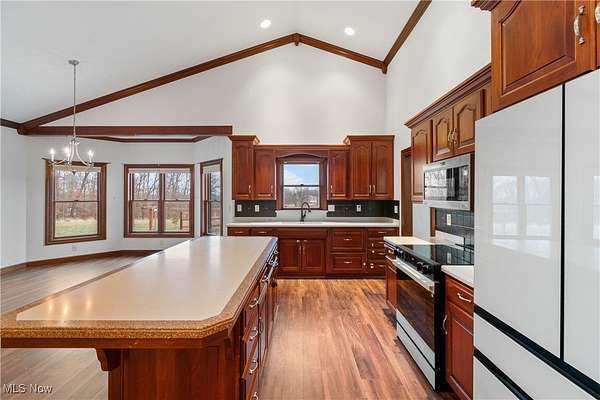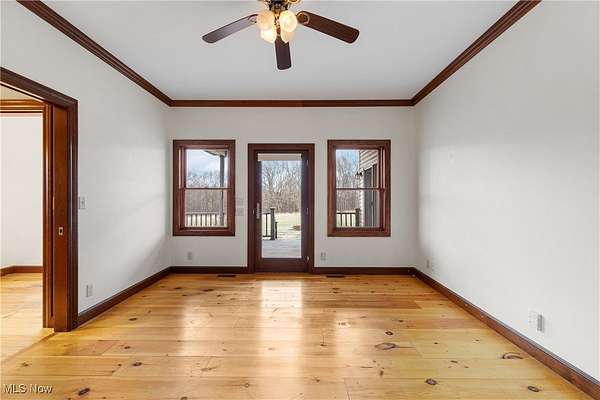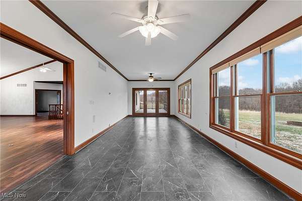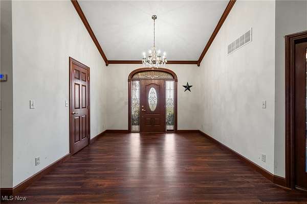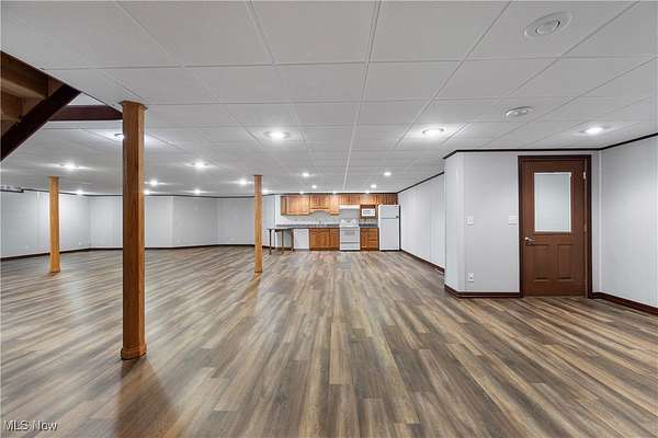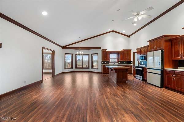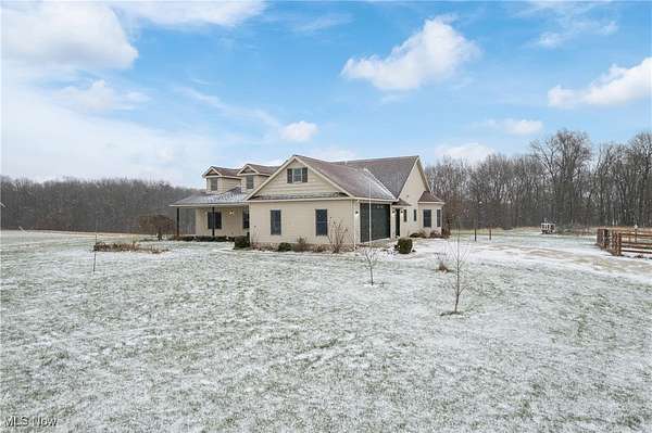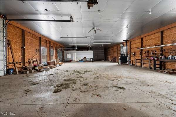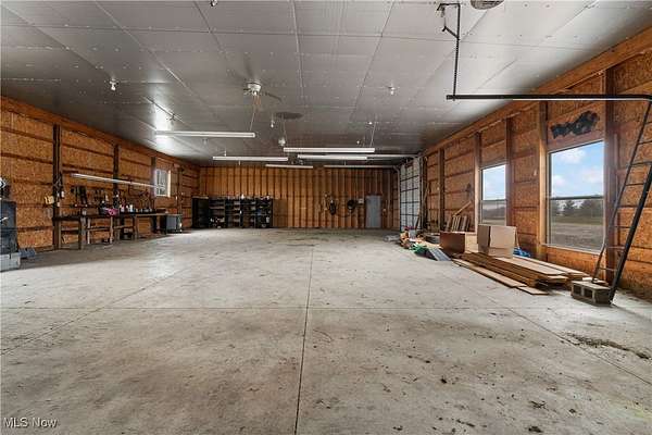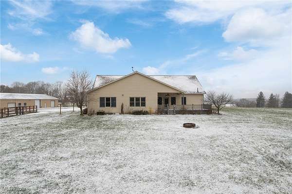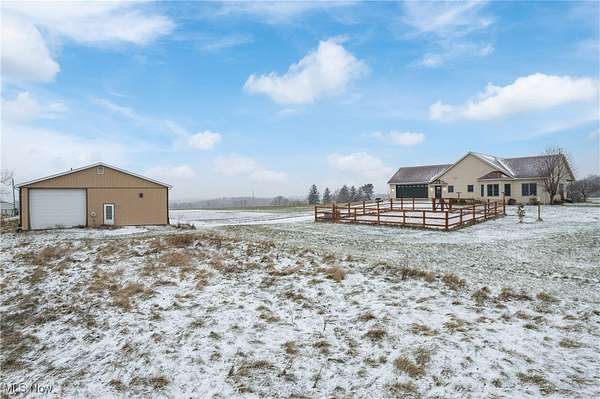 Welcome home to this spacious ranch built in 2008 and set on an sweeping 5.59 acres. This rare property combines modern comfort, incredible garage space, and a fully finished lower level that opens the door to multigenerational living, hobby space, or entertaining. Step inside to an inviting open floor plan, where the main living area flows seamlessly into the kitchen & dining spaces, perfect for everyday living and gatherings. The main level features a primary suite with hardwood floors, a private master bath, and convenient his-and-hers closets. You will also love the enclosed sunroom just off the living room, with new flooring, leading to the back deck that extends your living space outdoors, all with the backdrop of your own 5.59-acre setting. First-floor laundry adds to the easy, one-level lifestyle. Don't miss this one-of-a-kind garage space. In addition to the attached 2-car garage, there is a massive detached 10-car garage-an ideal setup for car enthusiasts, hobbies, or storage. Part of the detached garage offers the potential to be finished into a workshop or office area, giving you even more flexibility to tailor the space to your needs. The fully finished basement nearly doubles your living area and is set up beautifully for guests, extended family, or entertaining. It includes an additional kitchen with its own full set of appliances that will all convey, a huge living area, a full bathroom, and a bedroom. The basement has been refreshed with brand-new flooring throughout and updated walls where the old paneling has been removed and replaced for a clean, modern look. Recent updates provide peace of mind, including a new water softener (2025), newer kitchen appliances on the main level (2024-2025), new flooring in the sunroom, and some newer windows. With its generous square footage, rare 10-car detached garage, finished basement with second kitchen, comfortable main-level layout, and 5.59 acres to call your own, this 2008-built ranch is a must-see.